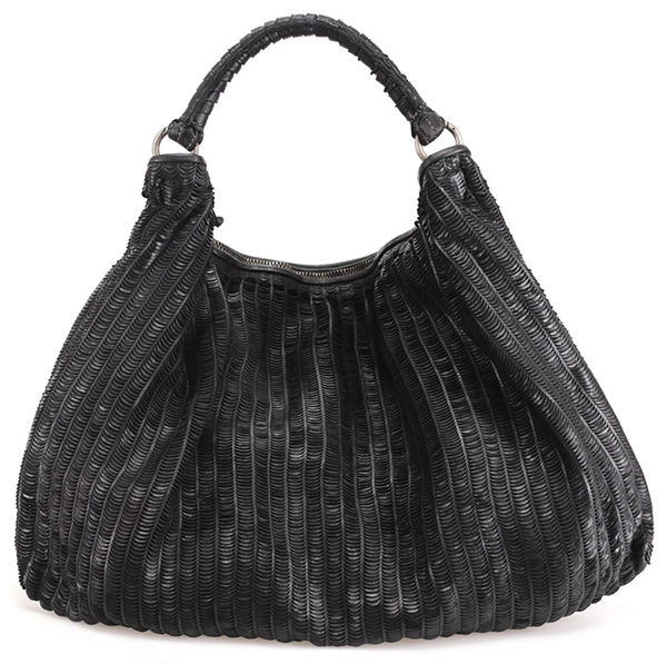 Borsa in pelle laserata con chiusura a zip e tasca a zip dietro. Misure 50 x 37 cm.