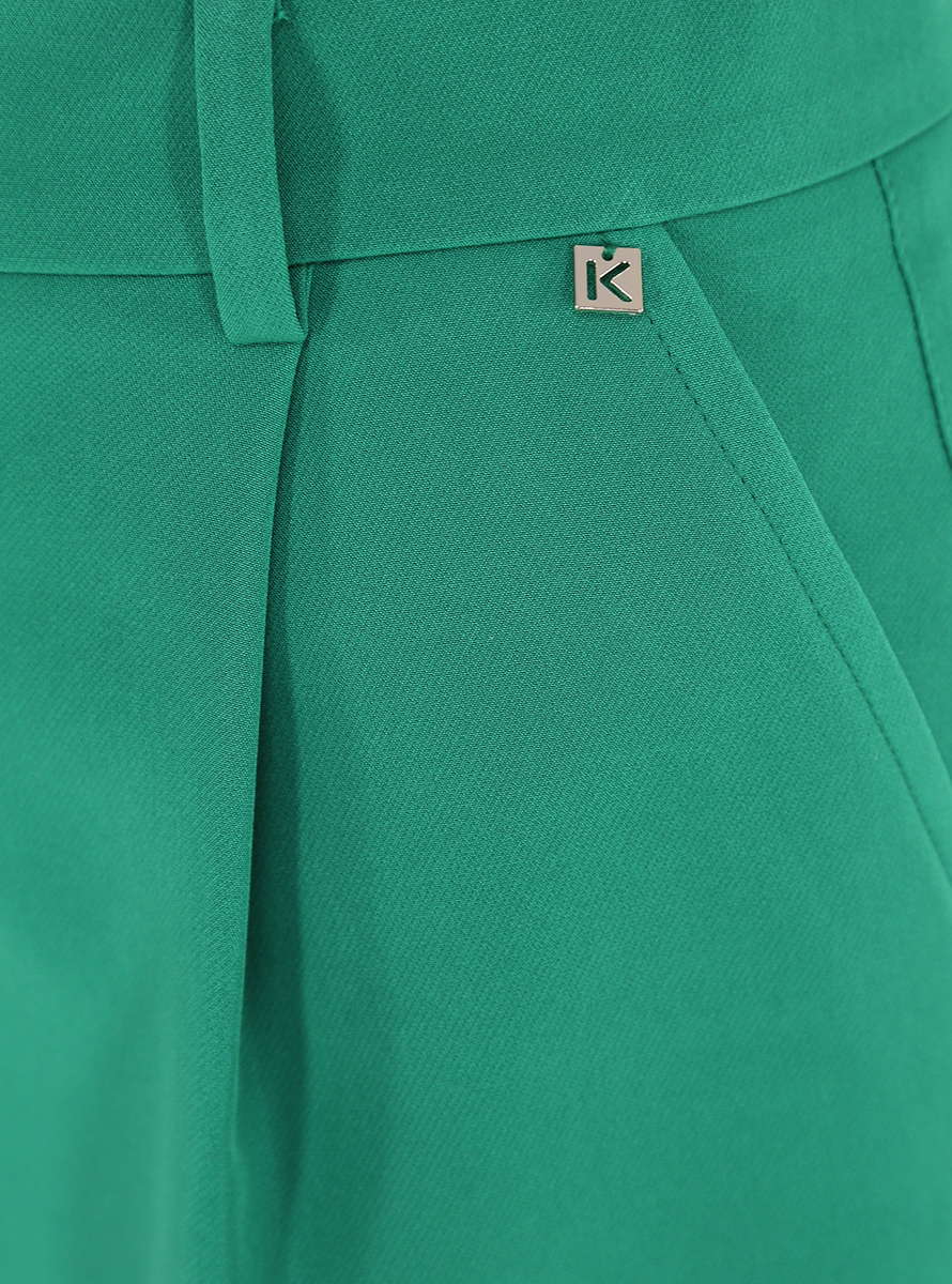 Kocca Shorts aus Stretch-Gabardine. Hohe Taille mit Schlitz und Paspeltaschen auf der Rückseite. Falten vorne. Das Model ist 1,75 groß und trägt Größe 40.