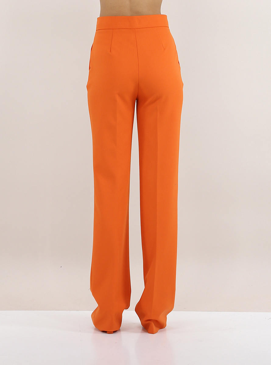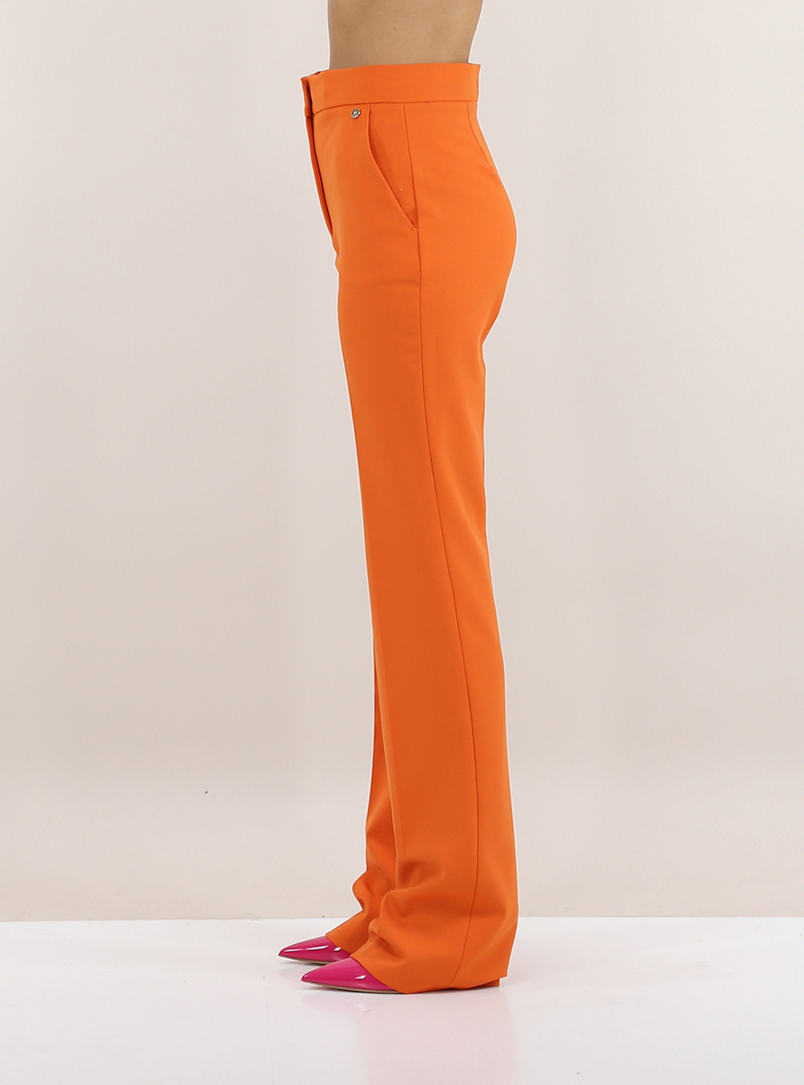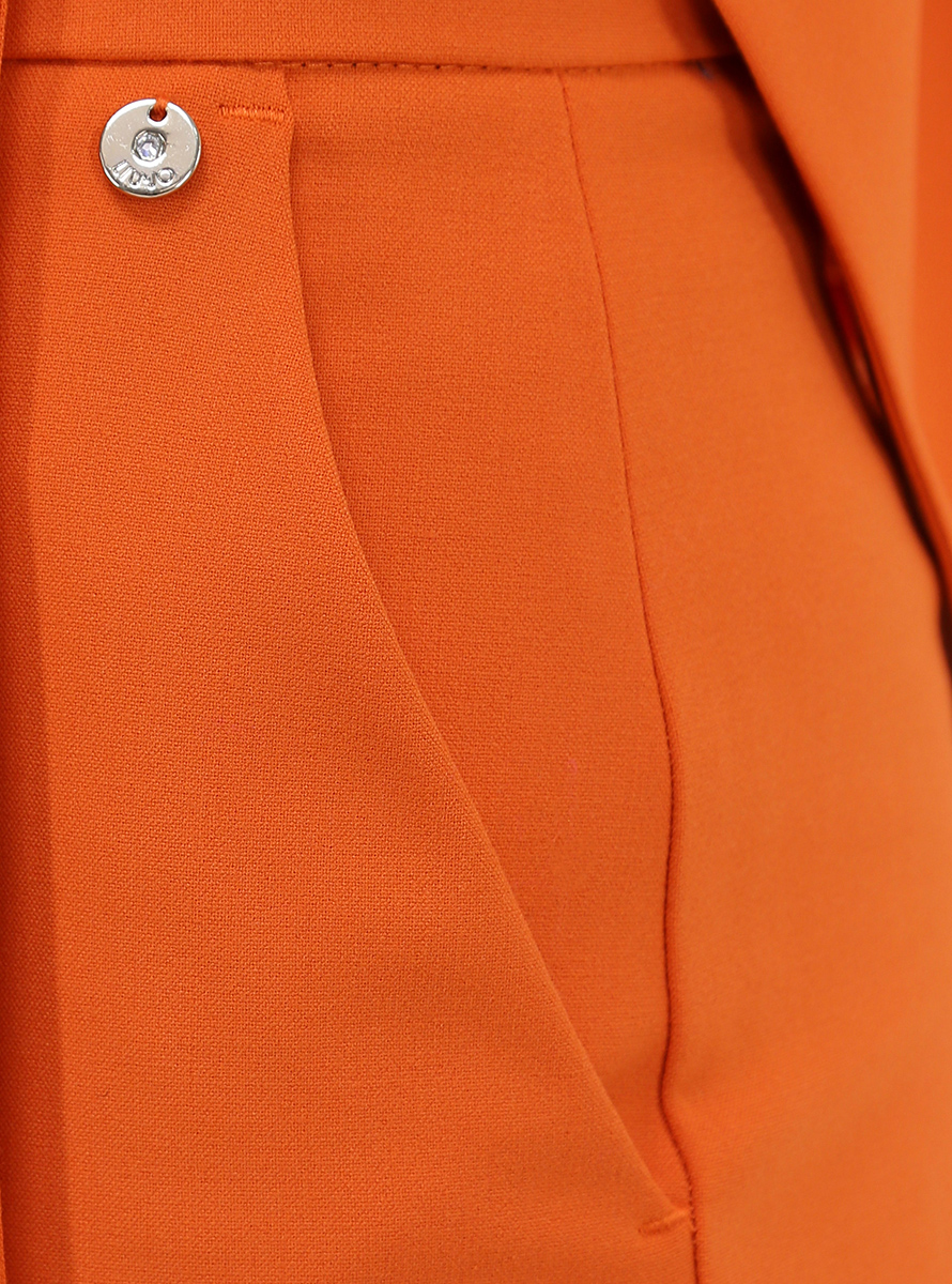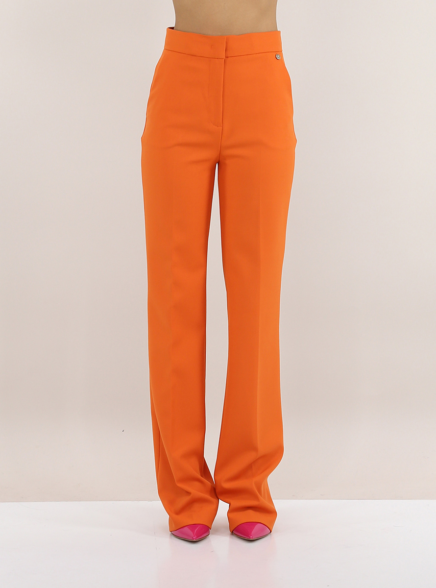 Palazzo-Hose Liu.jo aus Stretch-Viskosemischung mit hoher Taille und amerikanischen Taschen. Das Model ist 1,70 groß und trägt Größe 38.