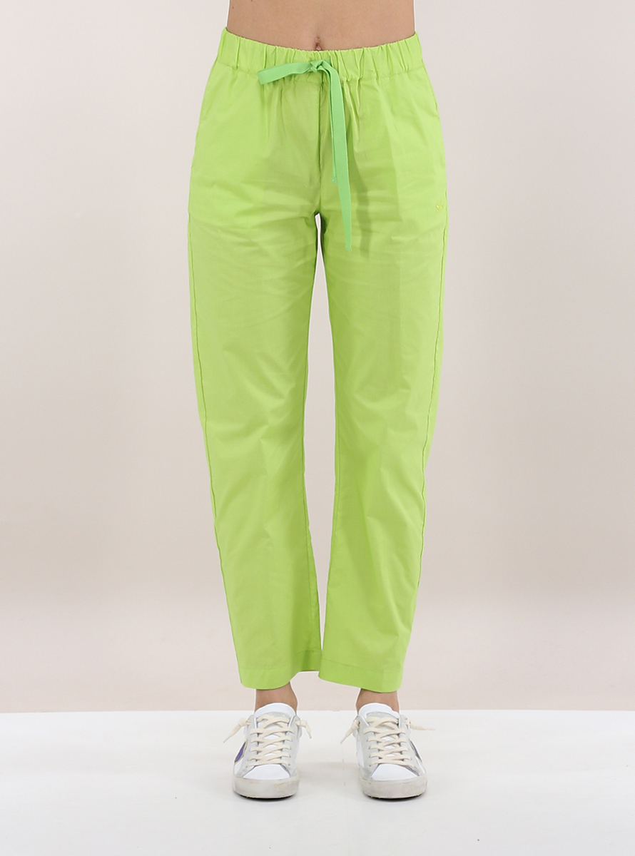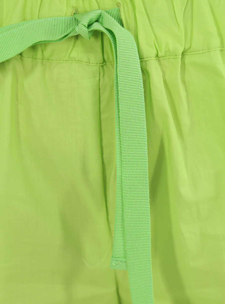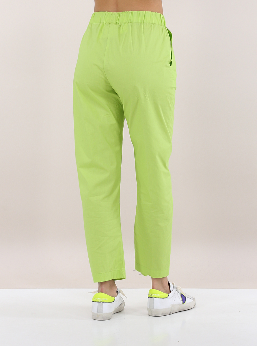 Weiche Semicouture-Hose aus Baumwolle. Hohe Taille mit Gummizug und Kordelzug. Amerikanische Taschen. Das Model ist 1,68 groß und trägt Größe 40.