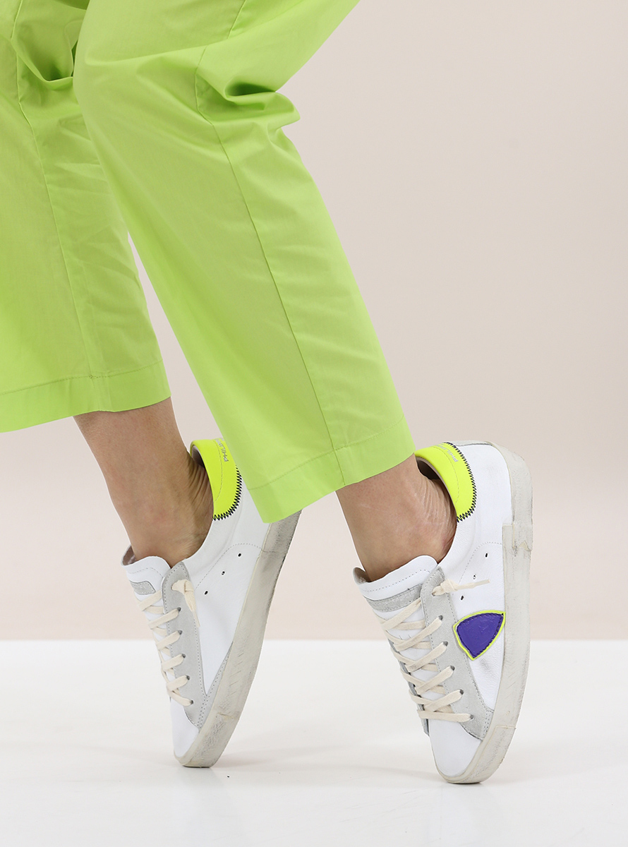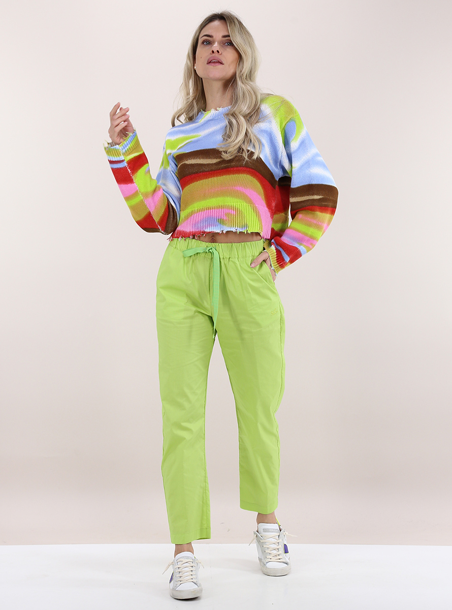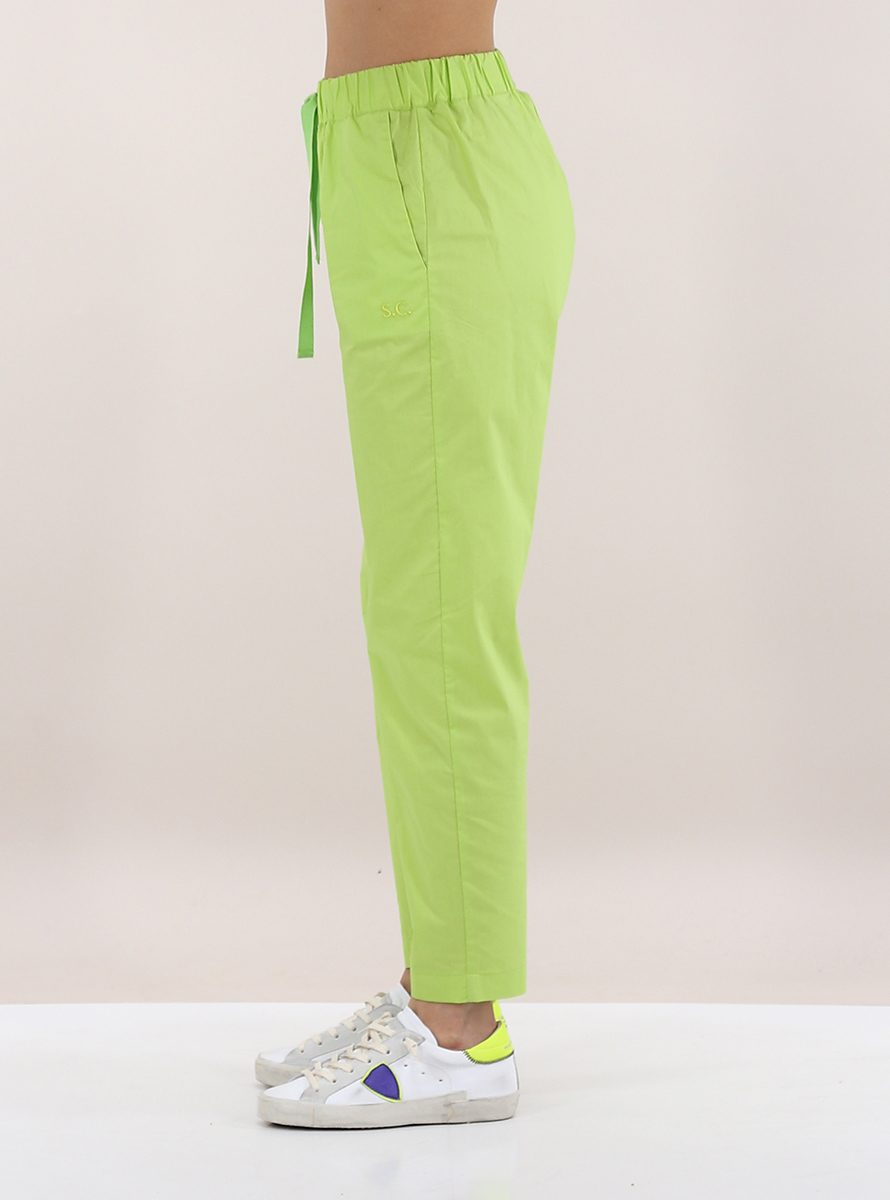 Weiche Semicouture-Hose aus Baumwolle. Hohe Taille mit Gummizug und Kordelzug. Amerikanische Taschen. Das Model ist 1,68 groß und trägt Größe 40.
