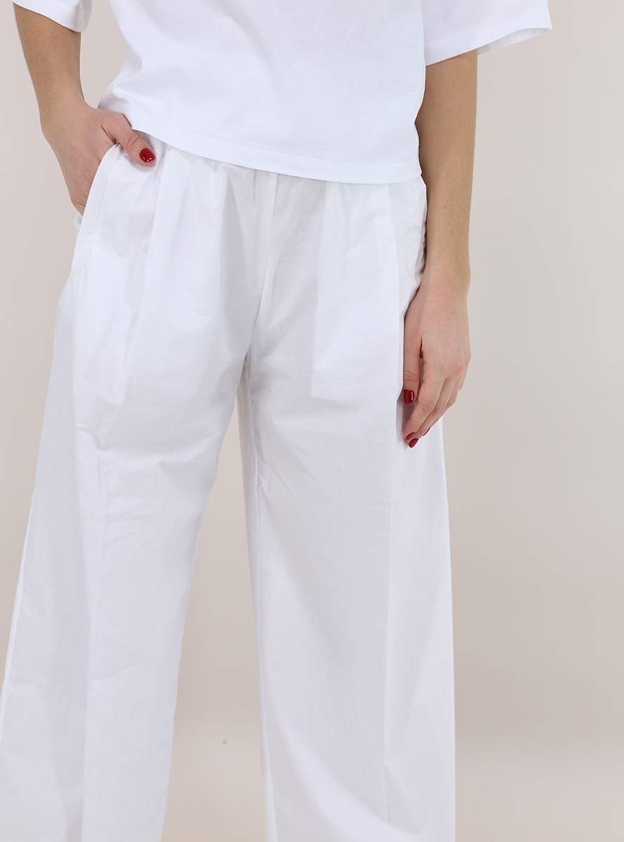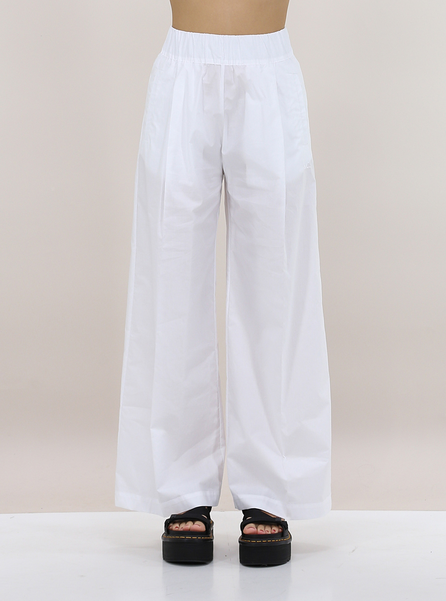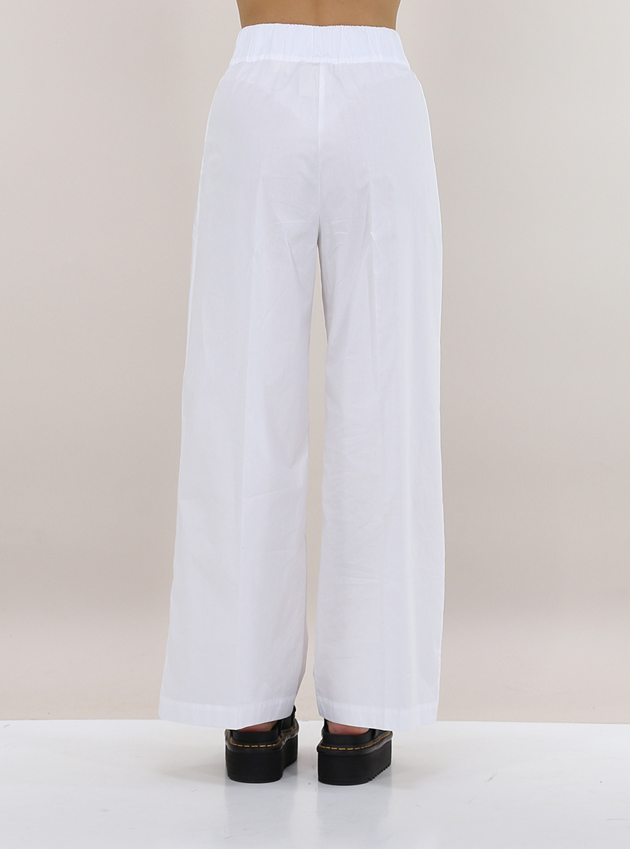Semicouture-Palazzohose aus Baumwolle. Hohe Taille mit Gummizug. Kängurutaschen mit Falten vorne. Das Model ist 1,75 groß und trägt Größe 38.