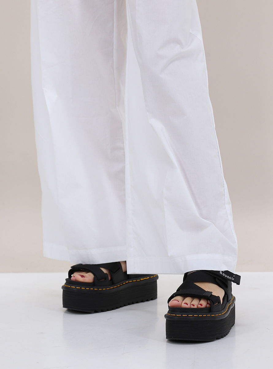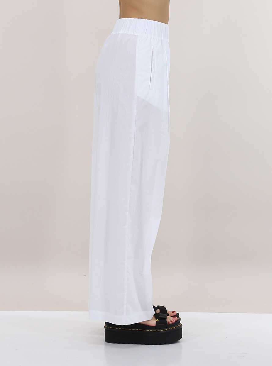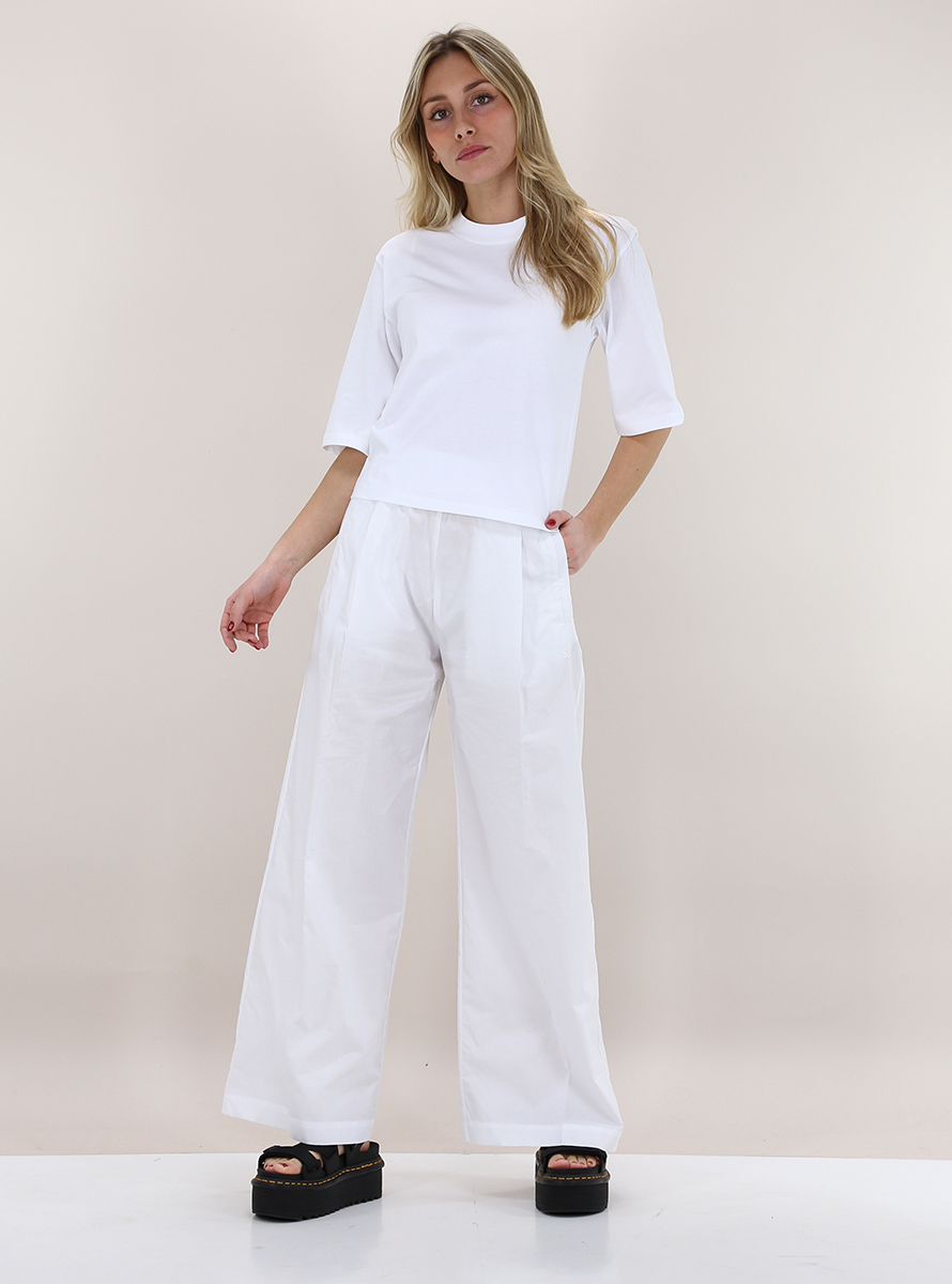 Semicouture-Palazzohose aus Baumwolle. Hohe Taille mit Gummizug. Kängurutaschen mit Falten vorne. Das Model ist 1,75 groß und trägt Größe 38.
