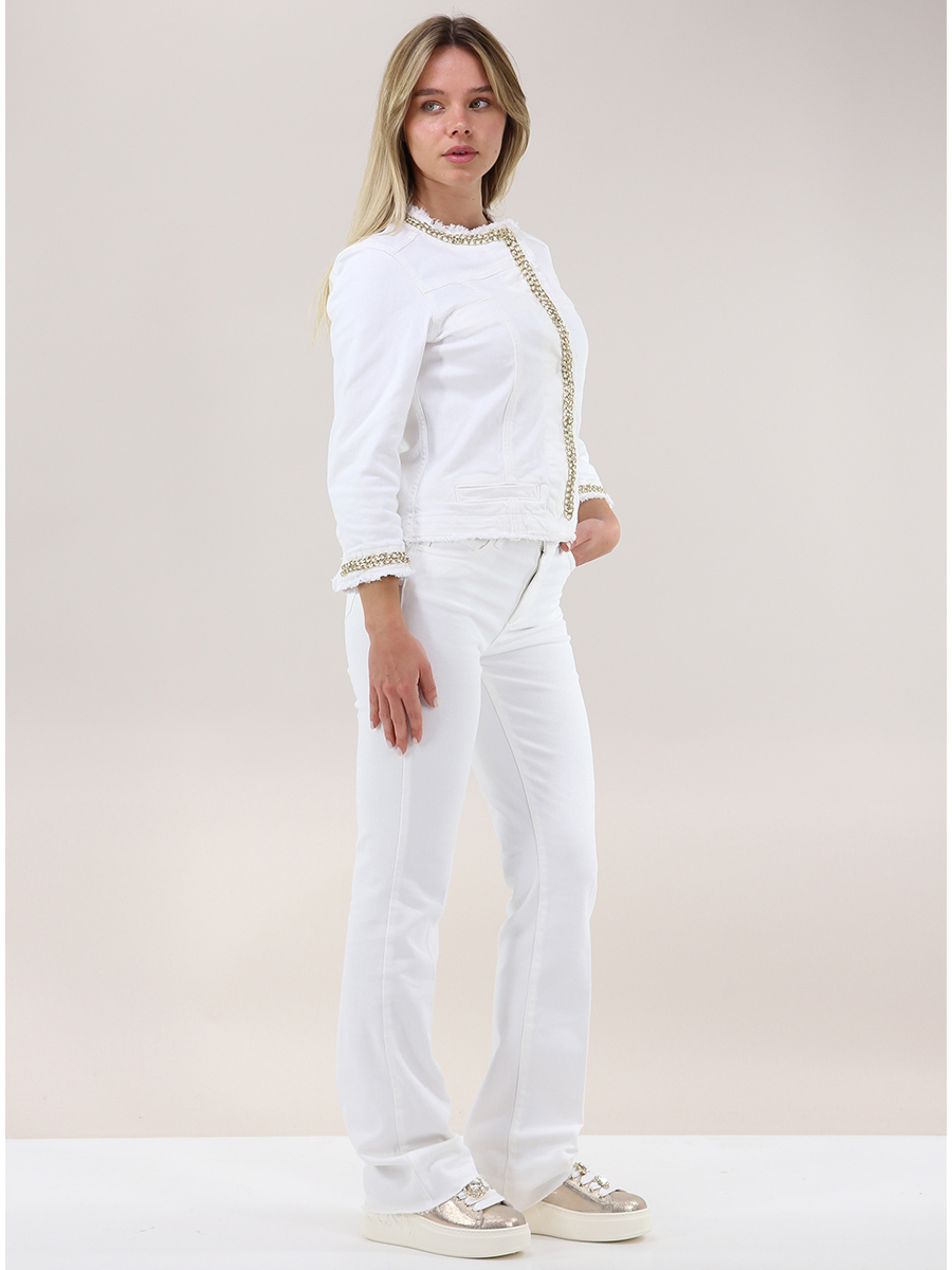 • Details: Logo, Kontrastapplikationen, Goldene Details, Taschen, Fransensaum