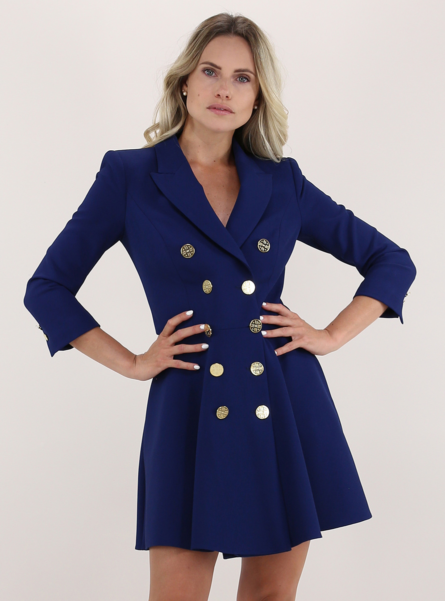Elisabetta Franchi Hemd halb gefüttert aus Stretch-Crêpe. Dreiviertelärmel und Spitzenkragen. Beuteltaschen und goldene Logoknöpfe für doppelreihigen Verschluss. Ausgestellter Boden. Das Model ist 1,68 groß und trägt Größe 40.