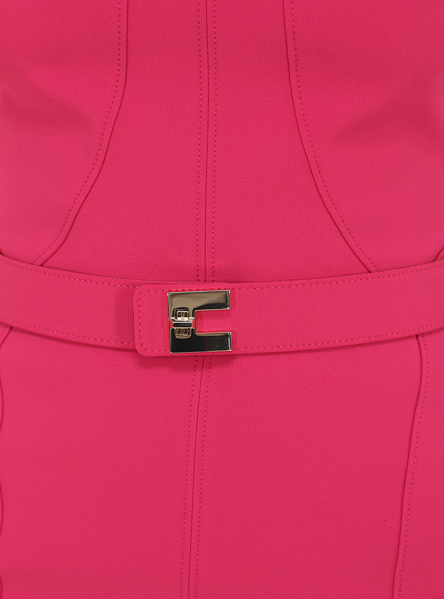 Elisabetta Franchi Etuikleid aus gefüttertem Stretch-Cady. Quadratischer Ausschnitt vorne und hinten und Schlitz unten. Reißverschluss mit goldenem Logo. Inklusive Stoffgürtel mit Schnalle. Das Model ist 1,68 groß und trägt Größe 40.