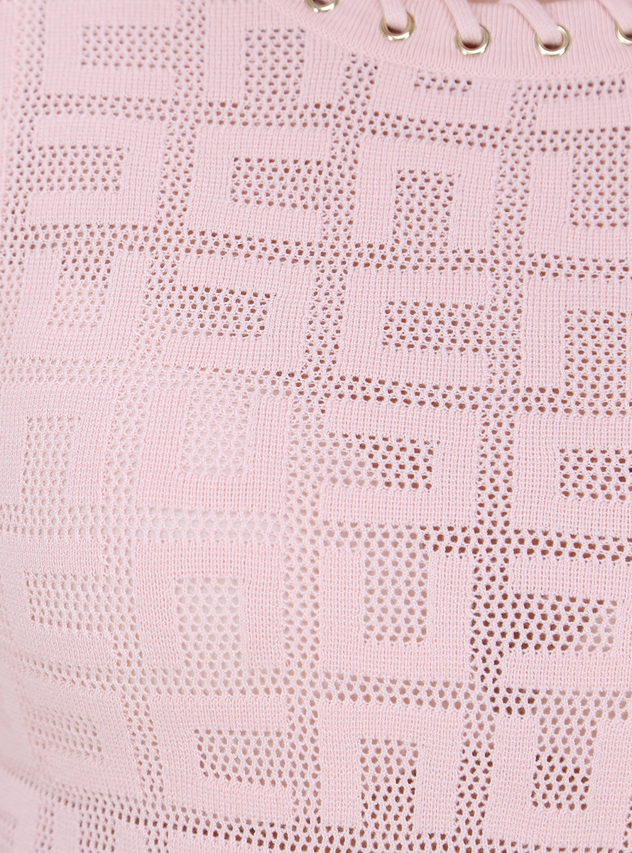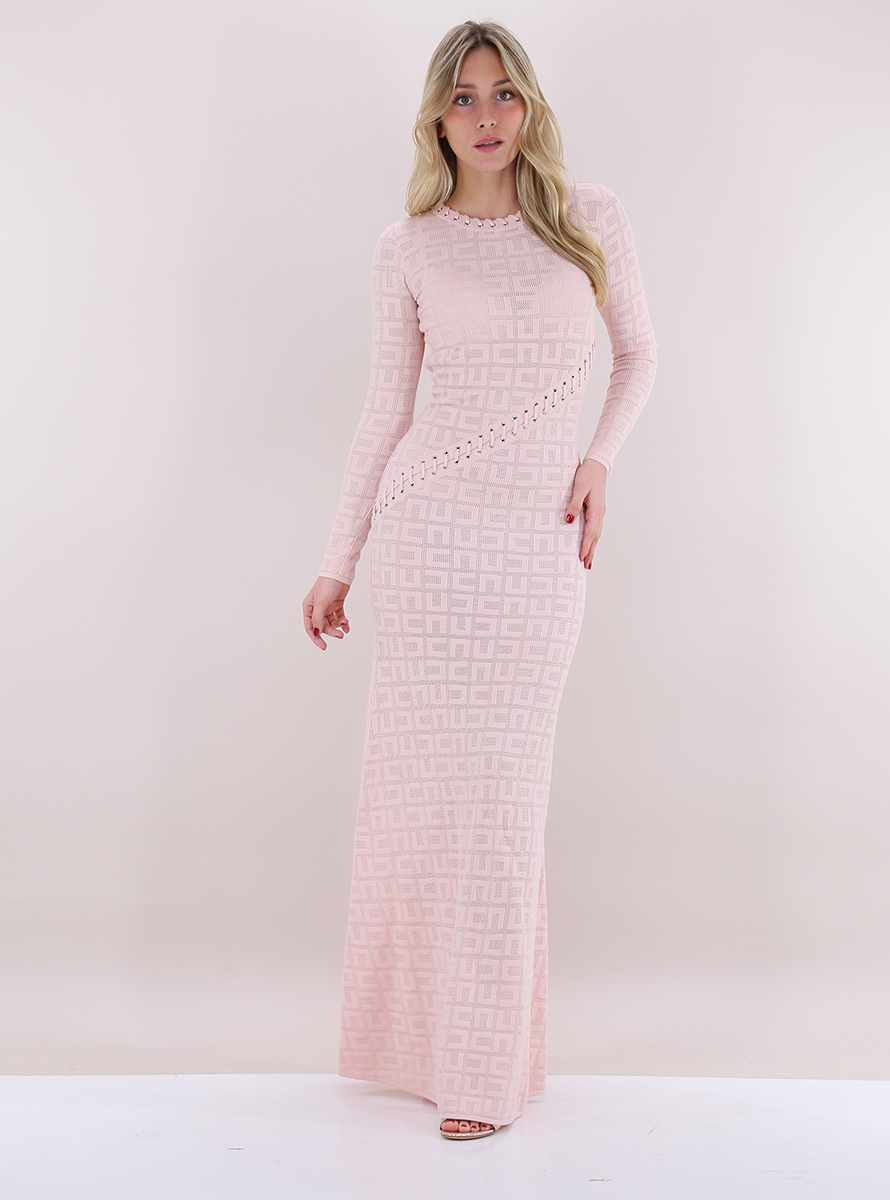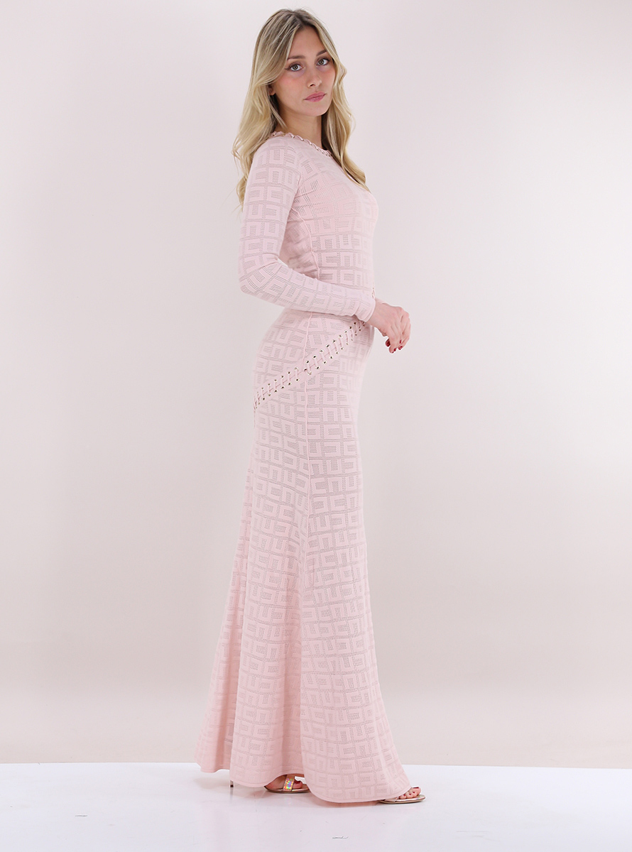 Elisabetta Franchi Kleid aus Viskosemischung mit langen Ärmeln und Rundhalsausschnitt. Verschlusshaken auf der Rückseite mit Bullauge. Vorder- und Rückseite gewebt. Ton-in-Ton Mesh-Monogramm-Muster. Das Model ist 1,75 groß und trägt Größe 40.