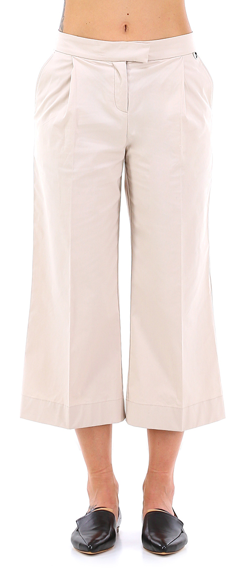 Pantalone cropped con tasche all'americana e a filetti sul retro. La modella è alta 1.68 ed indossa la taglia 40.