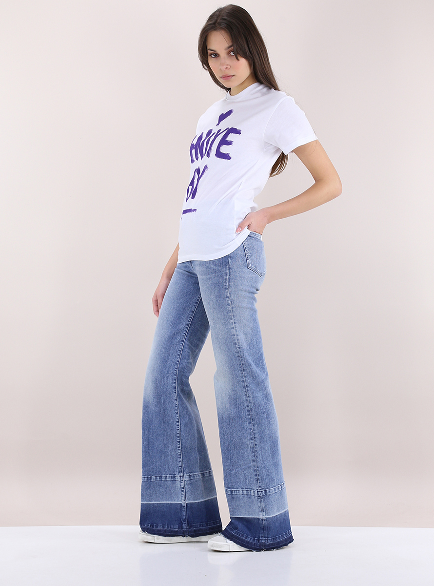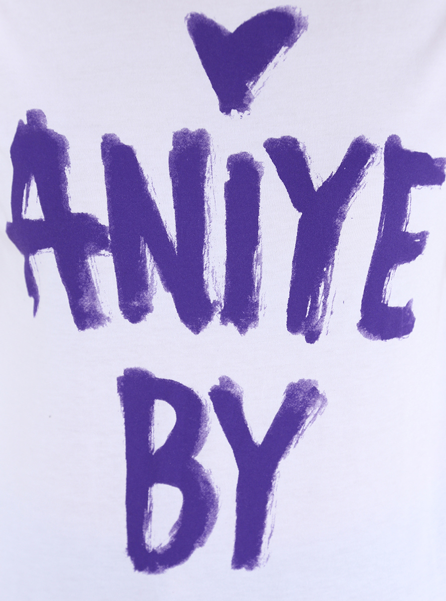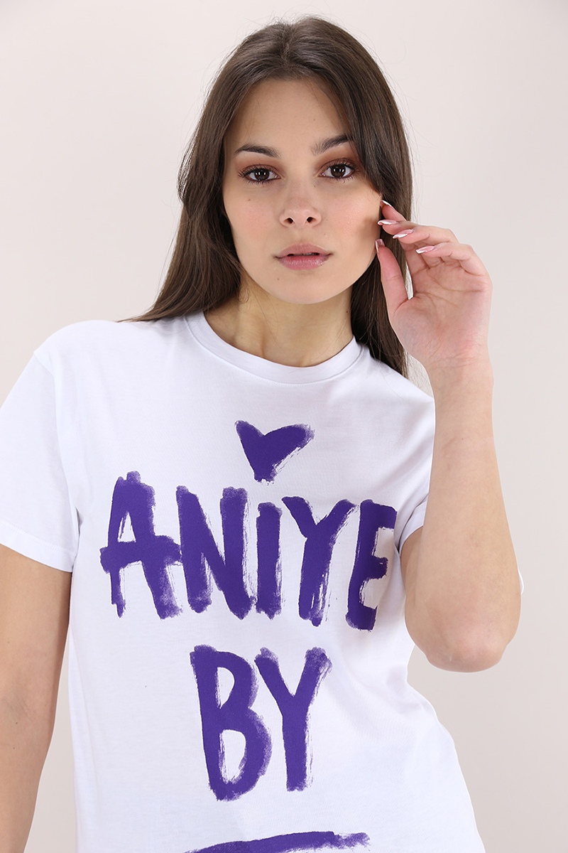 Aniye by Baumwoll-T-Shirt mit kurzen Ärmeln und Rundhalsausschnitt. Logodruck vorne. Das Model ist 1,75 groß und trägt Größe 38.