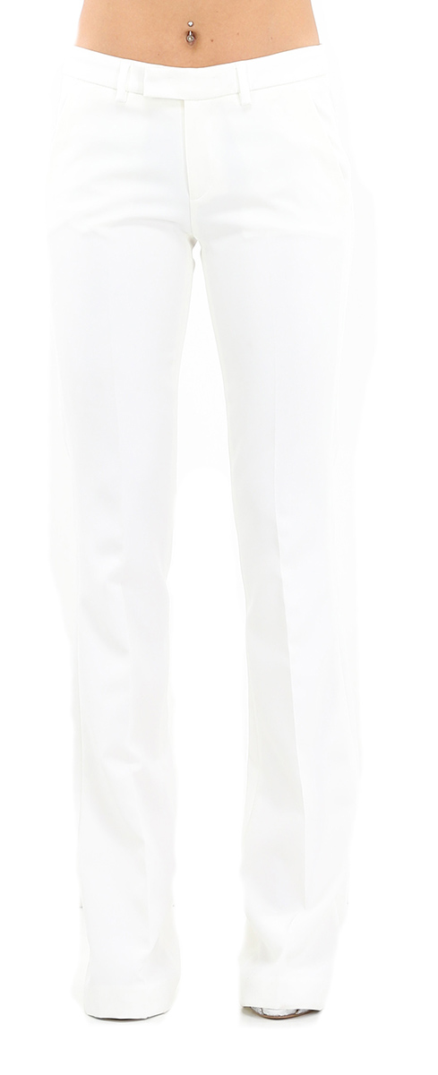 Pantalone a zampa con tasche all'americana sui fianchi ed a filetto sul retro. La modella è alta 1,68 e indossa la taglia 38.