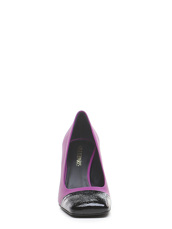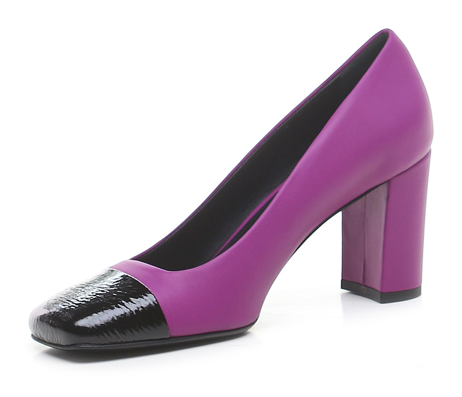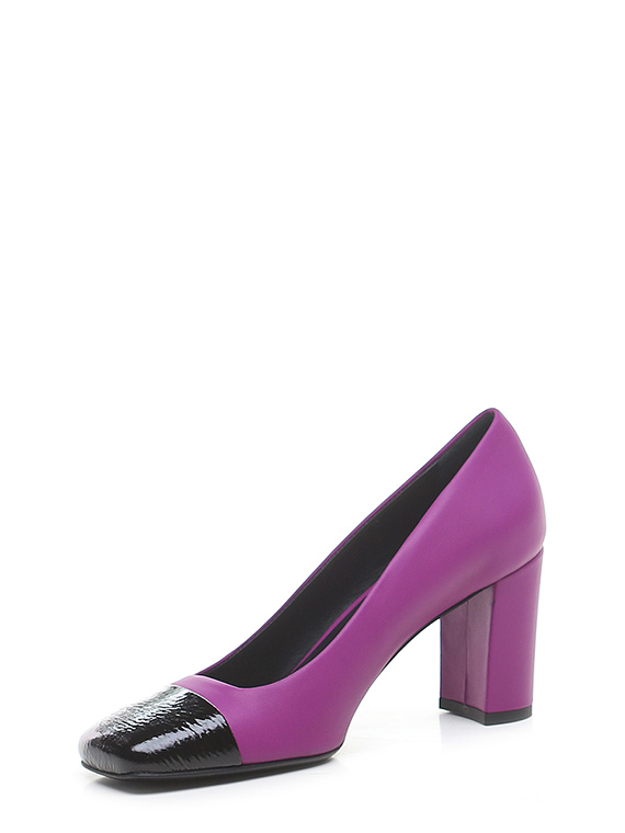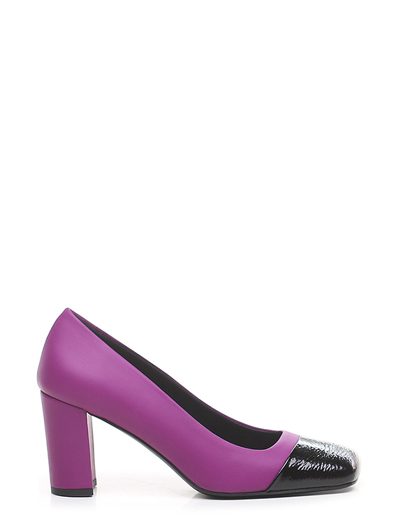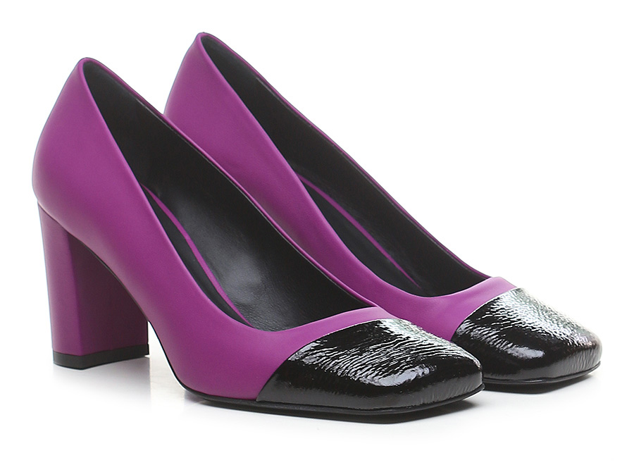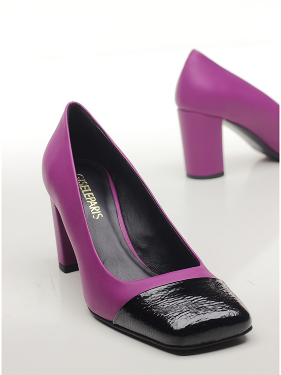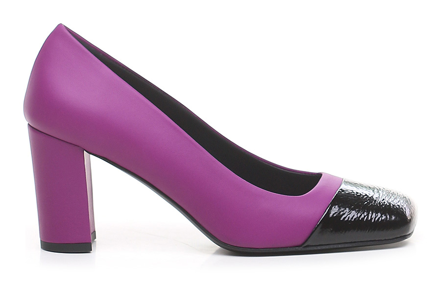 Schuh aus Leder und Naplak mit Ledersohle. Absatzhöhe 75mm. Ledergefütterter Absatz.