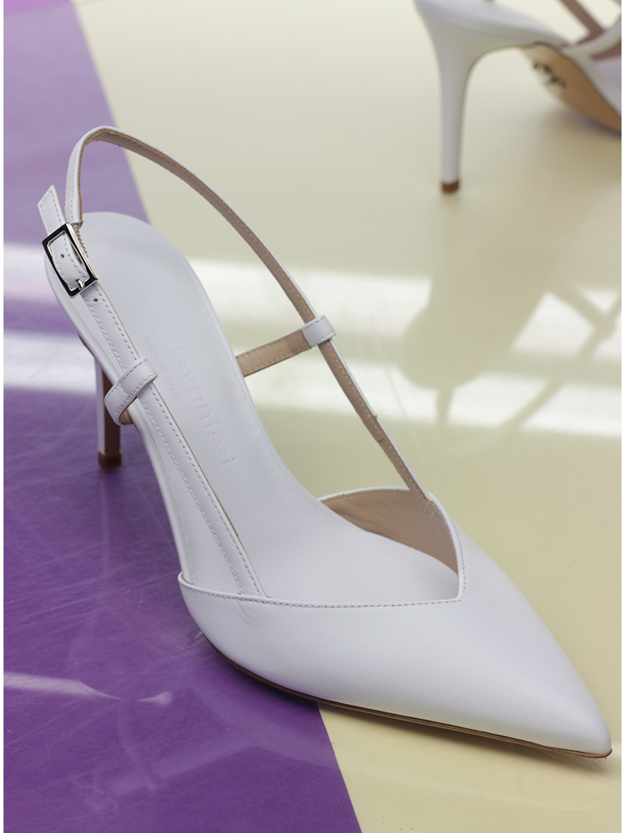 Lederschuh mit Retro-Riemen. Ledersohle. Absatzhöhe 95mm.