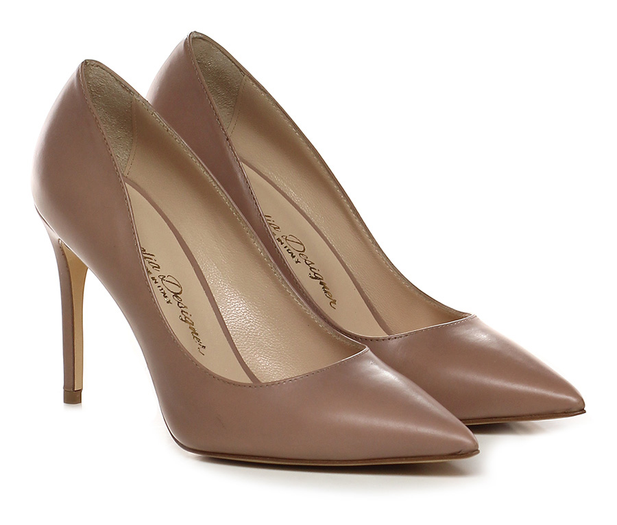 Decolletè in pelle con suola in cuoio e gomma. Tacco 100.