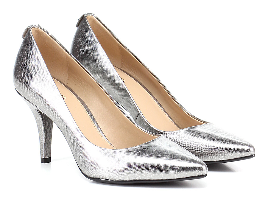 Decolletp in pelle laminata con suola in gomma. Tacco 85 foderato in pelle laminata.