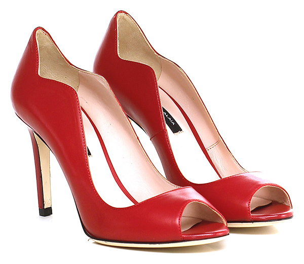 Decolletè open toe in pelle con suola in cuoio. Tacco 90.