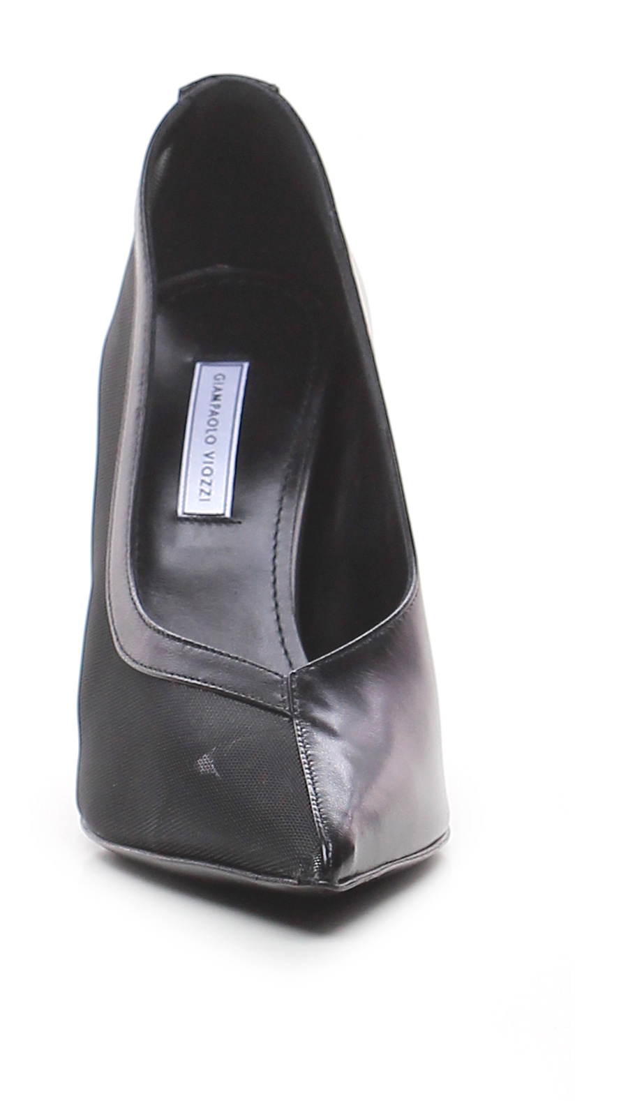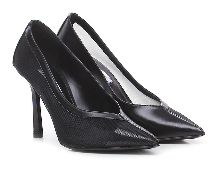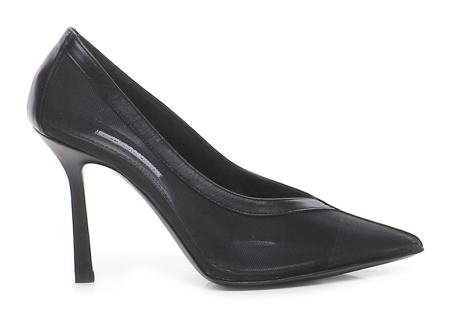 Dekolleté aus Netzstoff mit Ledereinsätzen, Ledersohle. 95 Absatz.