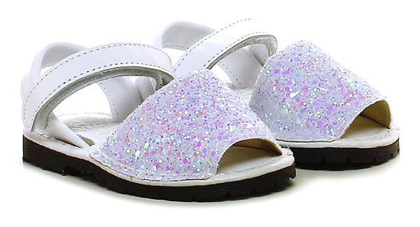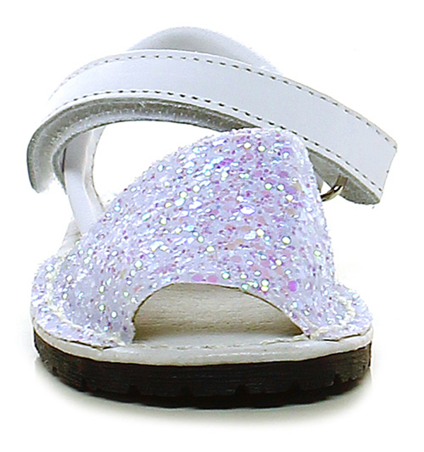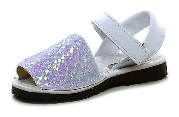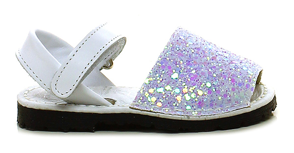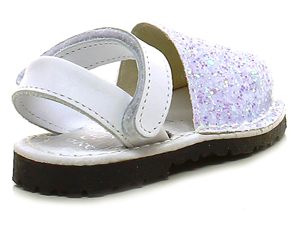 Flache Sandale aus Leder und Glitter mit Gummisohle. Ferse 15.