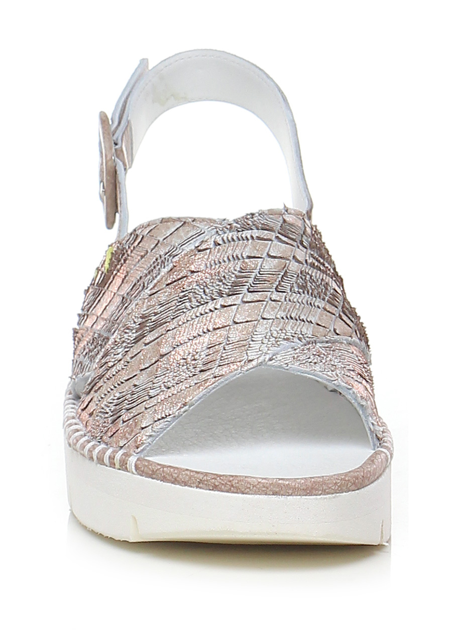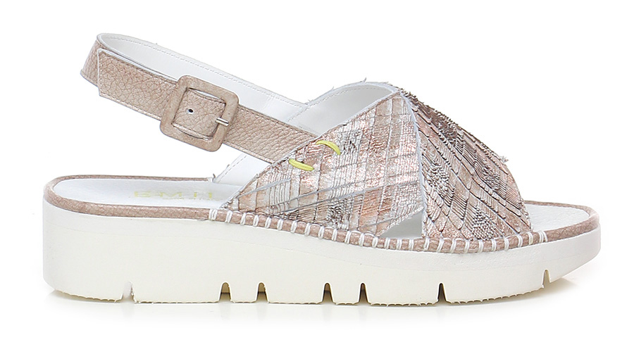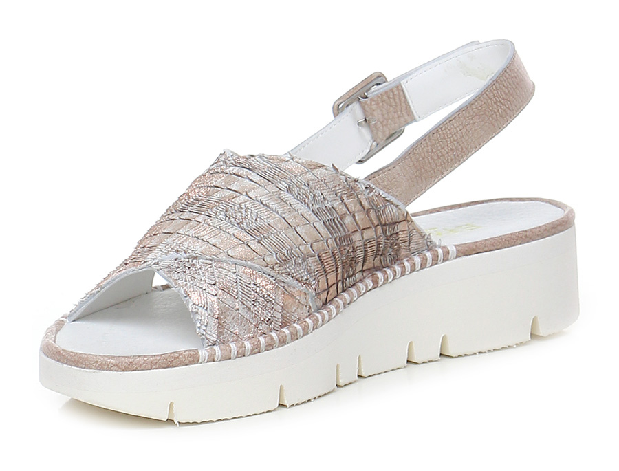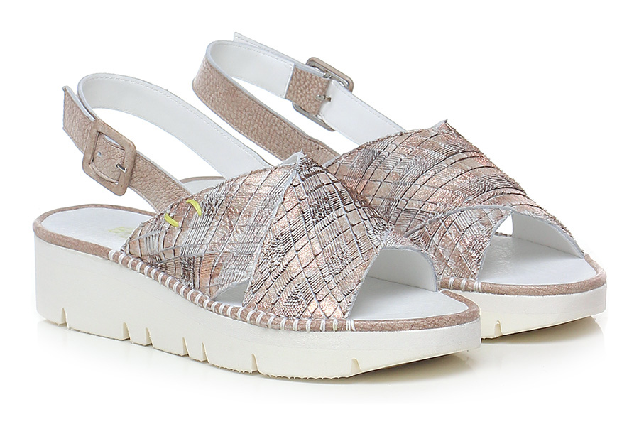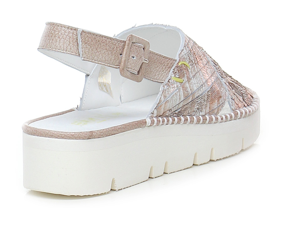Niedrige Sandale aus laminiertem Leder mit Vintage-Effekt, Riemen auf der Rückseite, leichte Gummisohle. 45 Absatz, 30 Plateau mit 15 bar.
