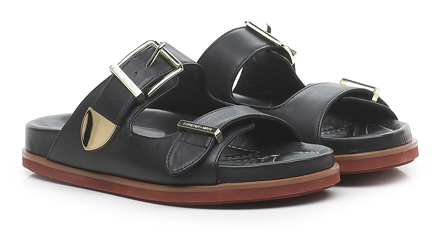Flache Sandalen L.M. Nero/oro