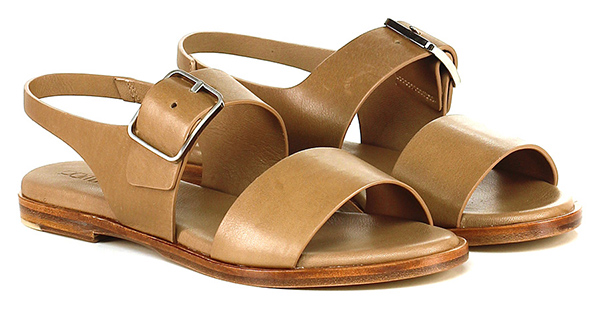 Sandalo basso in pelle con cinturino frontale e suola in cuoio. Tacco 20.