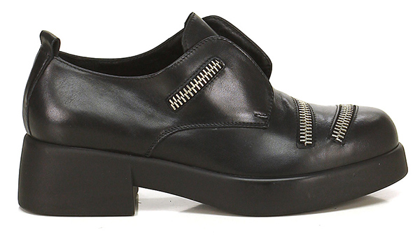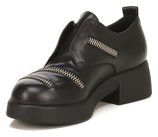 Halbschuh aus Leder mit Fake-Reißverschluss am Obermaterial und Gummisohle. 55 Absatz, 30 Plateau mit 25 bar.