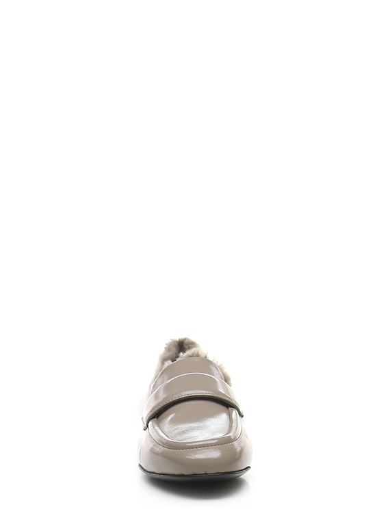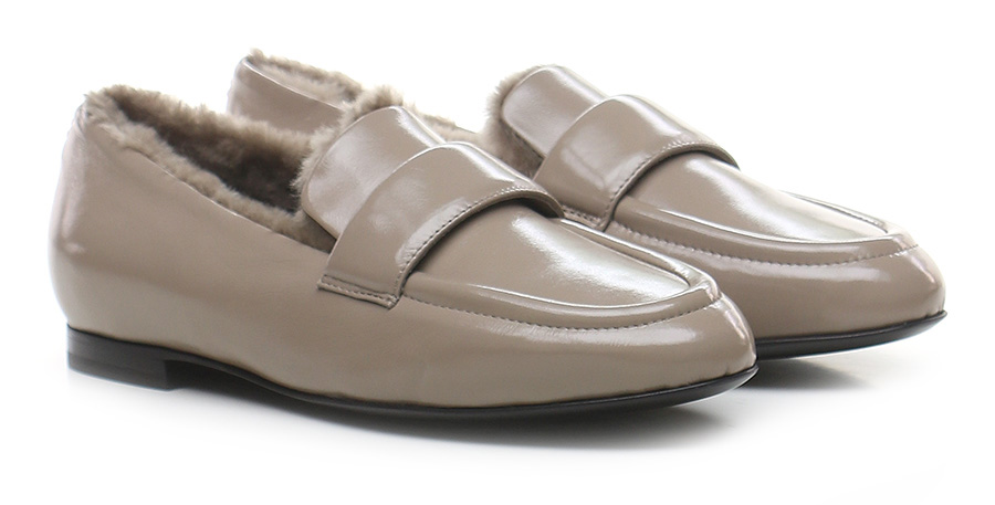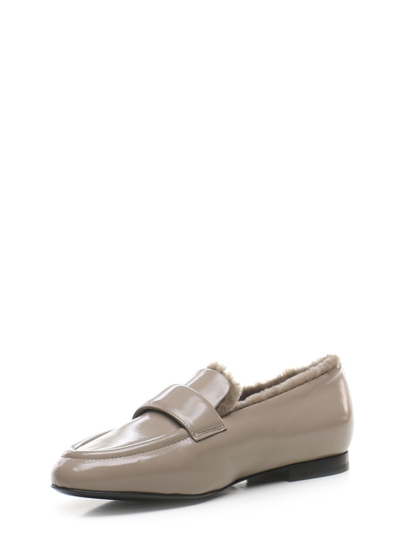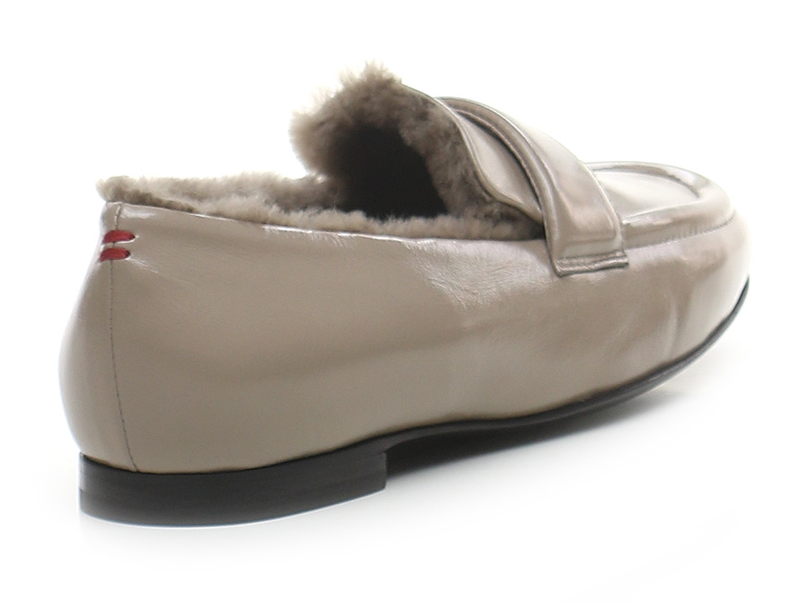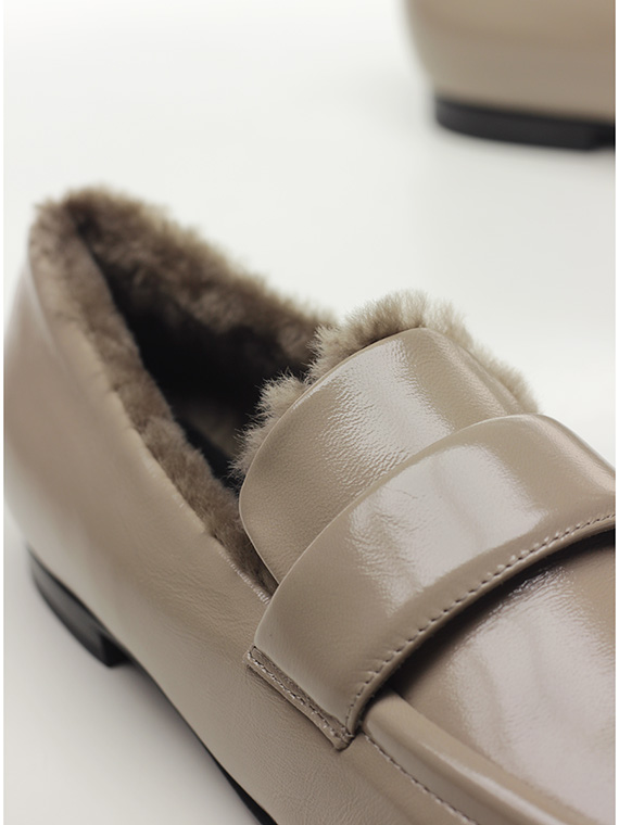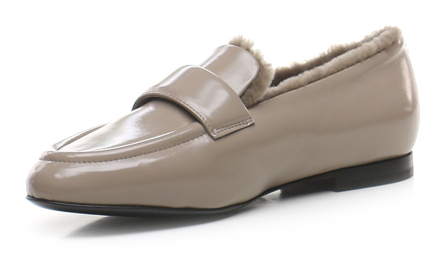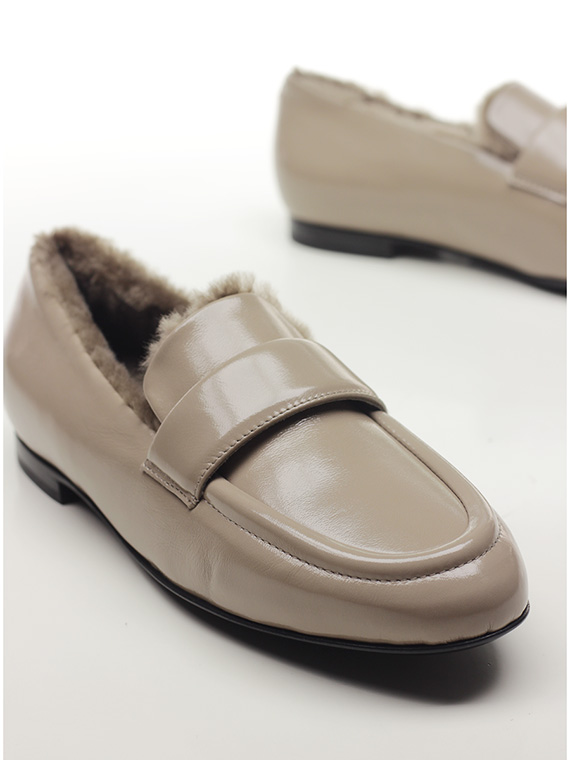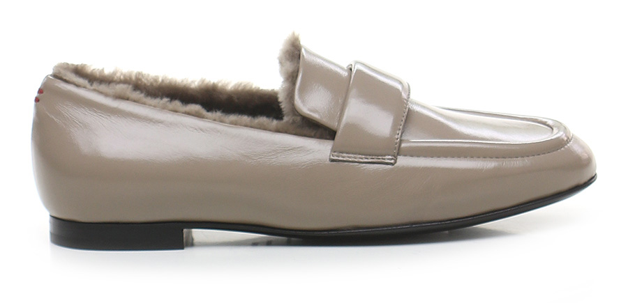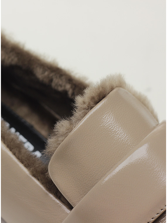 Schuh aus Naplak mit Lammfell gefüttert. Sohle aus Leder und Gummi. Absatzhöhe 15mm.