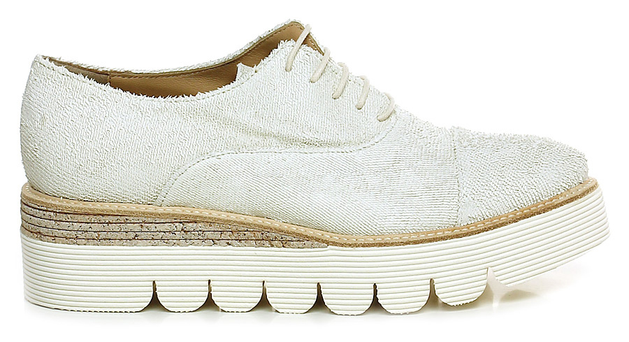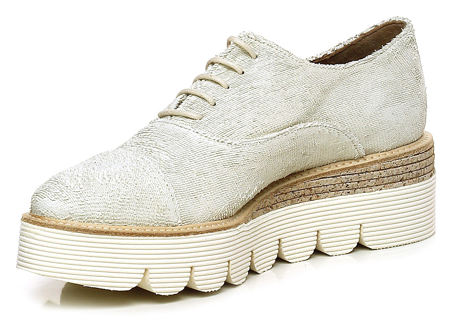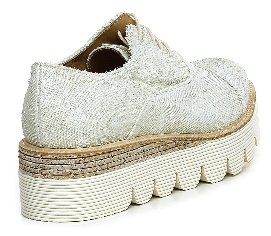 Halbschuh aus gelasertem Leder mit extra leichter Gummisohle, 50er Absatz, 35er Plateau mit 15er Absatz.