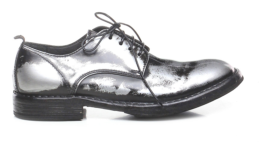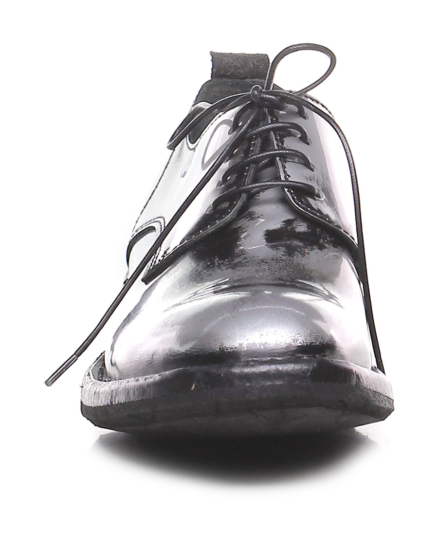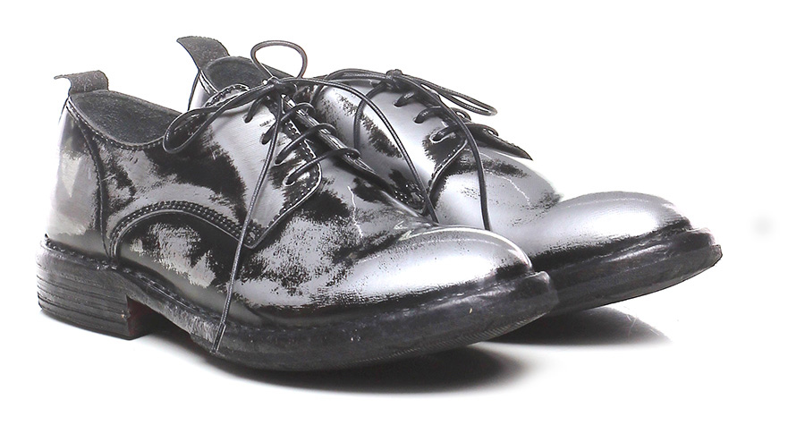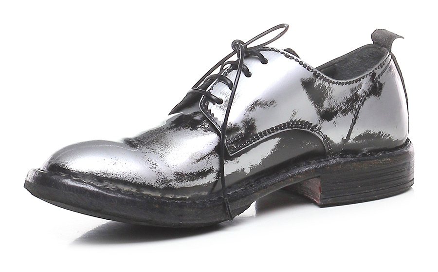 Halbschuh aus gebürstetem Leder mit Vintage-Laminat-Effekt, Leder- und Gummisohle. Absatz 30, Plattform 15 mit Absatz 15.