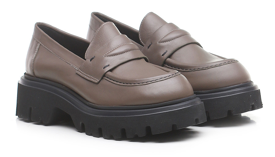 Lederschuh mit Gummisohle. 50 mm Absatzhöhe, 35 mm Plateau mit 15 mm Absatz.