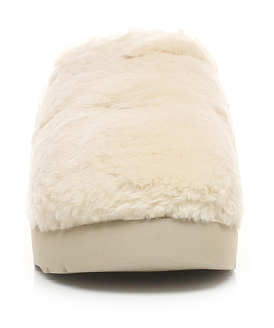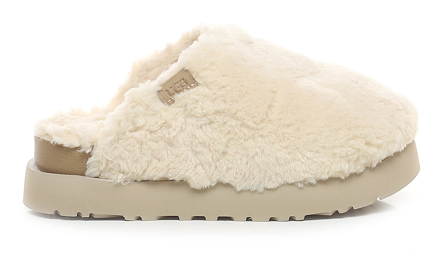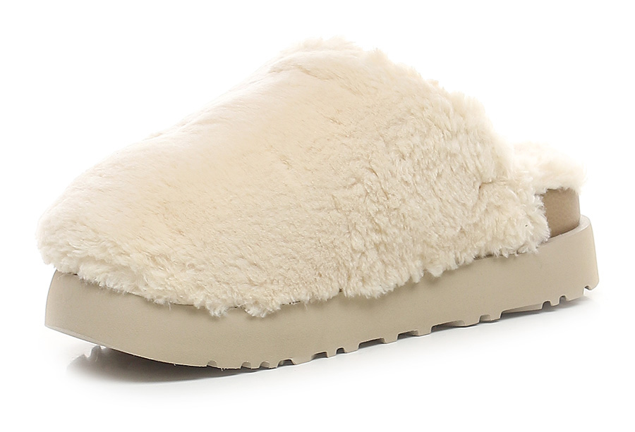 Stoffschuh mit Stofffutter und Gummisohle. 45 mm Absatzhöhe, 40 mm Plateau mit 5 mm Absatz.