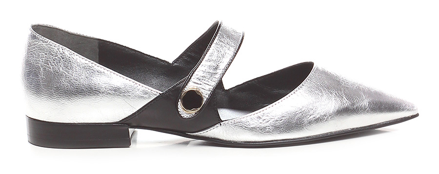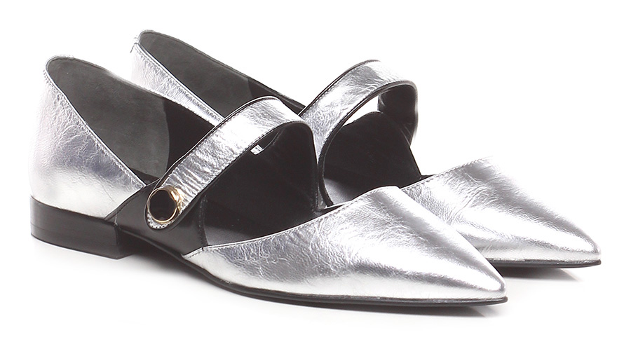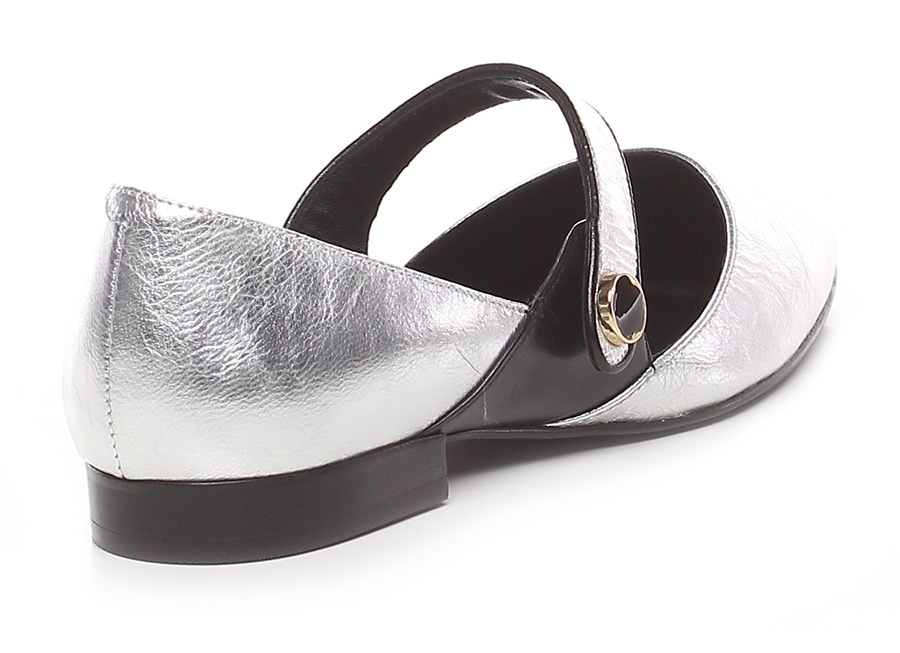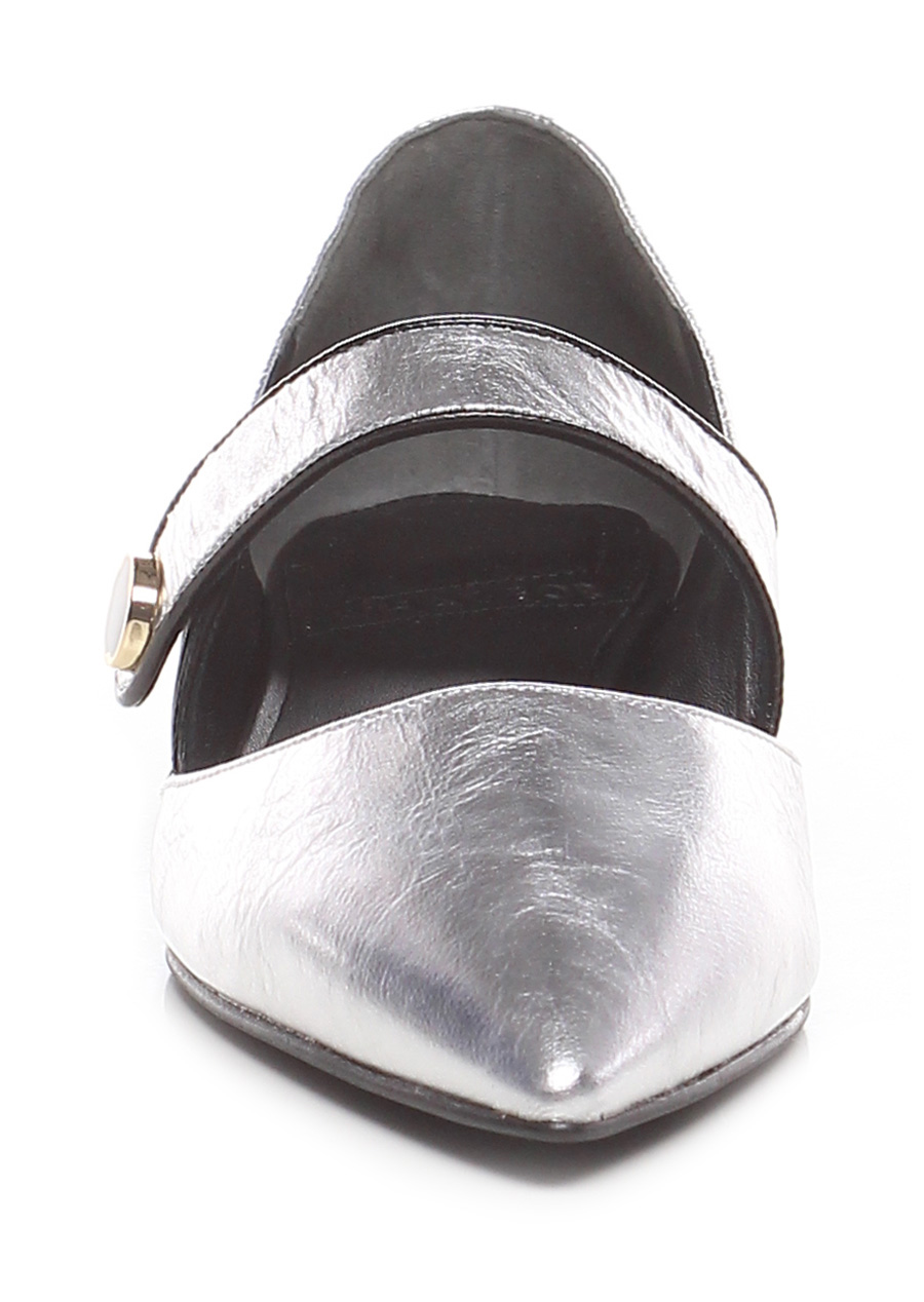 Halbschuh aus laminiertem Leder mit Vorderriemen mit Knopf. Gummisohle, Absatz 20.