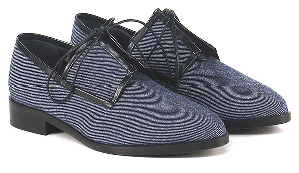 Scarpa bassa in pelle e tessuto con suola in cuoio. Tacco 25.