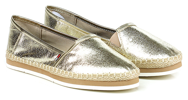 Scarpa bassa in eco pelle laminata effetto crack con suola in gomma. Tacco 25. Suola in corda.