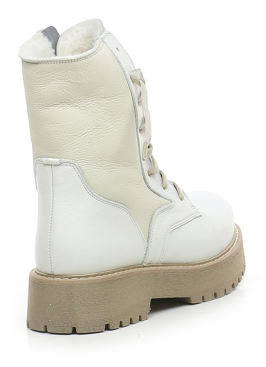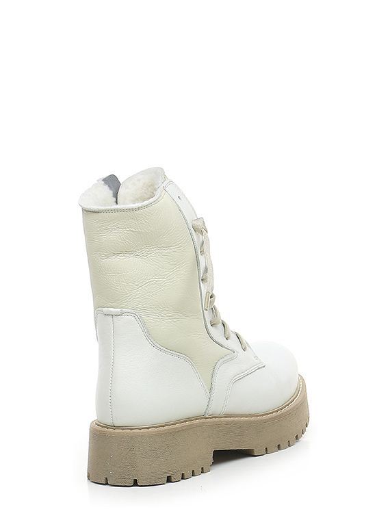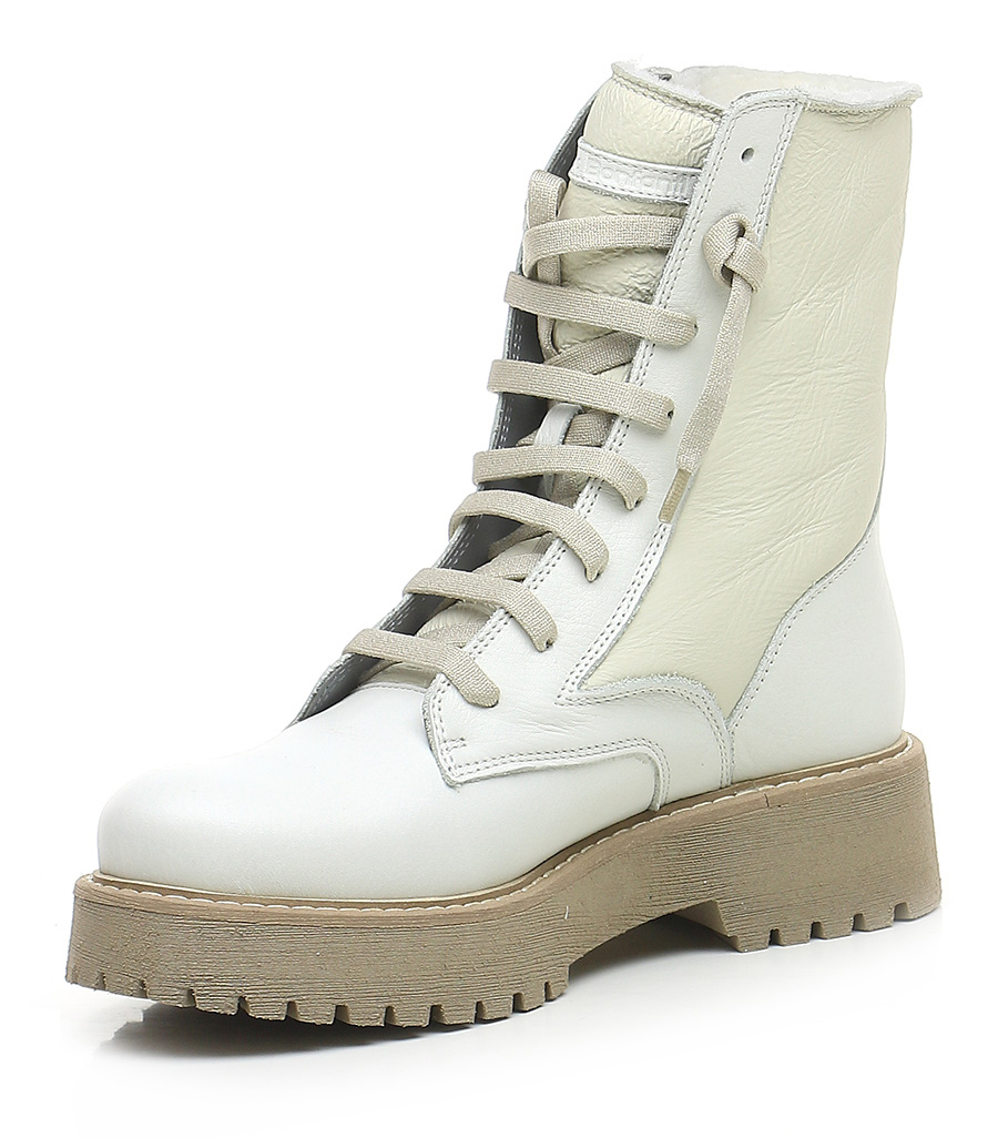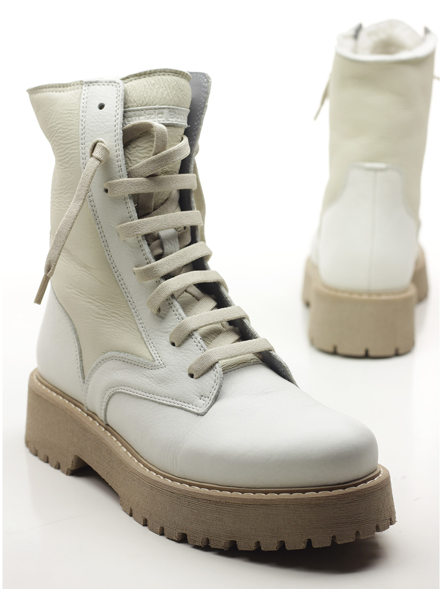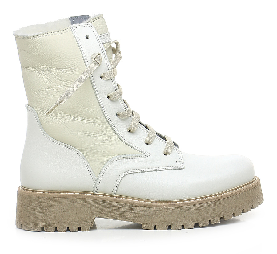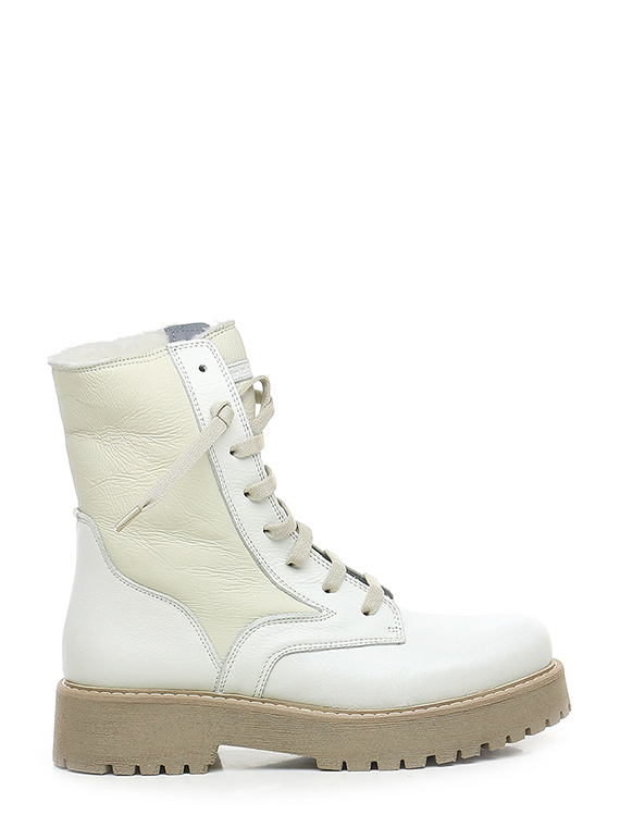 Stiefelette aus Leder mit Wollfutter. Gummisohle. 45 mm Absatzhöhe, 30 mm Plateau mit 15 mm Absatz.