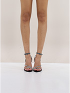 Sandale aus Samt und Strass mit Knöchelriemen. Ledersohle: Absatzhöhe 100mm. Samtgefütterte Ferse.