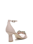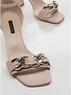 Ledersandale mit Knöchelriemchen und Metallketten-Accessoire vorne. Gummisohle. Absatzhöhe 75mm.