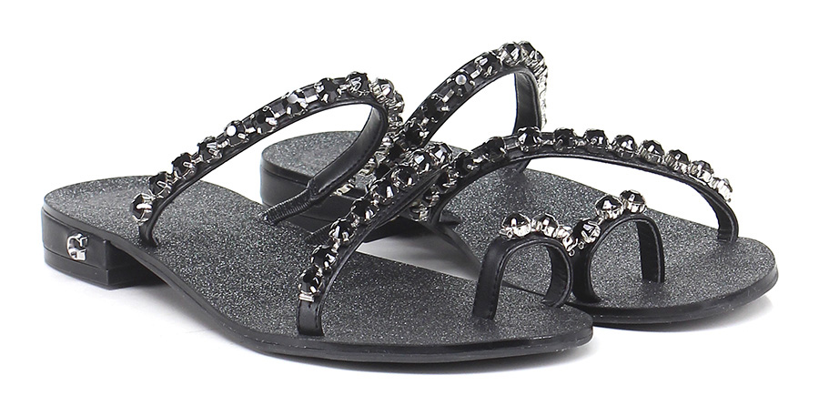 Sandalo alto in eco pelle con pietre su tomaia e suola in gomma. Tacco 20.