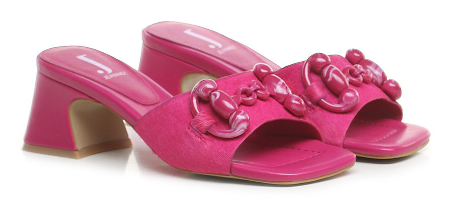 Sandalo in cavallino e pelle con morsetto frontale e suola in gomma. Altezza tacco 65mm.