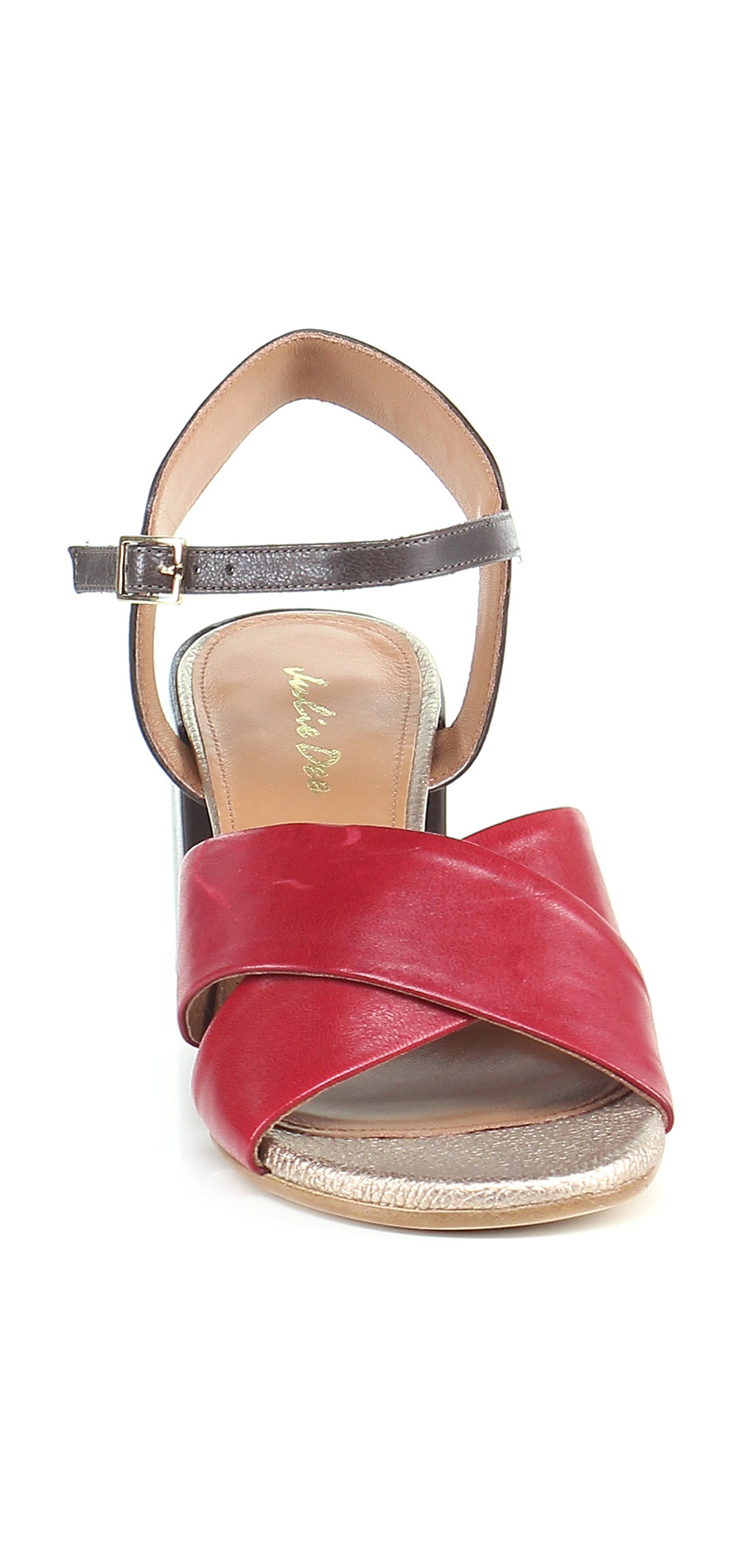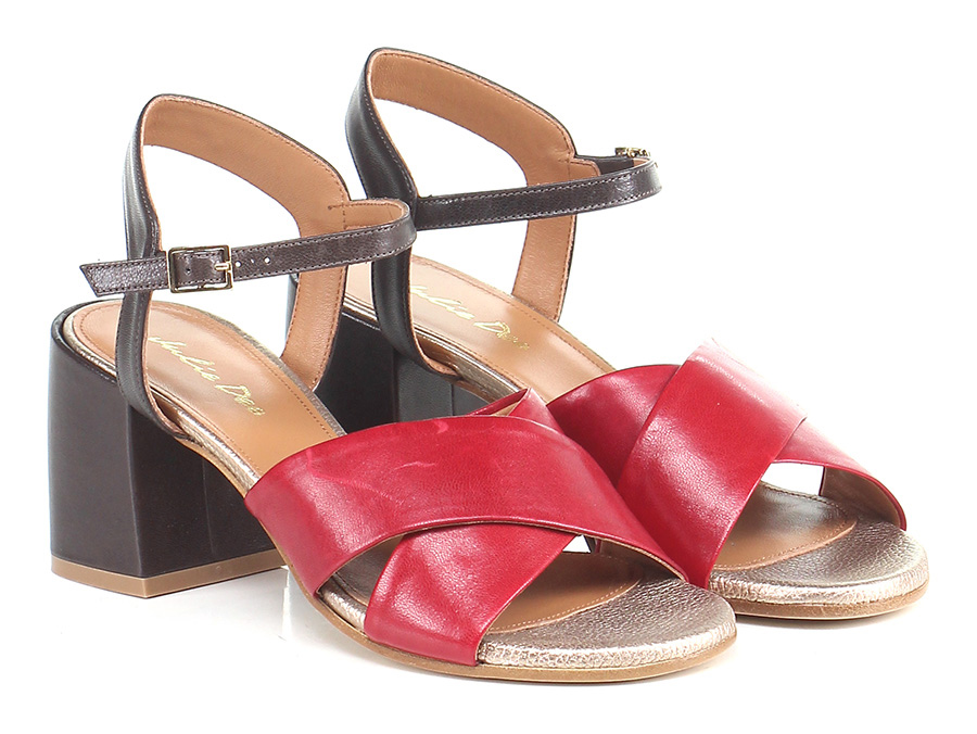 Hohe Sandale aus Vintage-Leder mit Knöchelriemchen und Ledersohle. 75 Absatz.