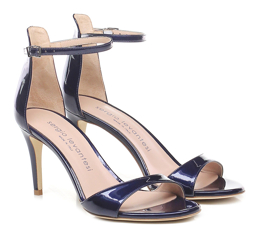 Sandalo alto in vernice perlata con cinturino alla caviglia, suola in cuoio. Tacco 80.