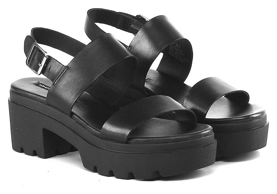 Sandalo alto in pelle con cinturino su retro e suola in gomma. Tacco 65, platform 40 con battuta 25.