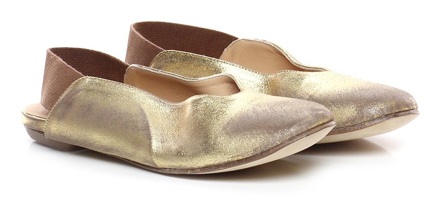 Scarpa bassa in pelle laminata vintage con inserto elasticizzato su retro. Suola in cuoio. Tacco 15.