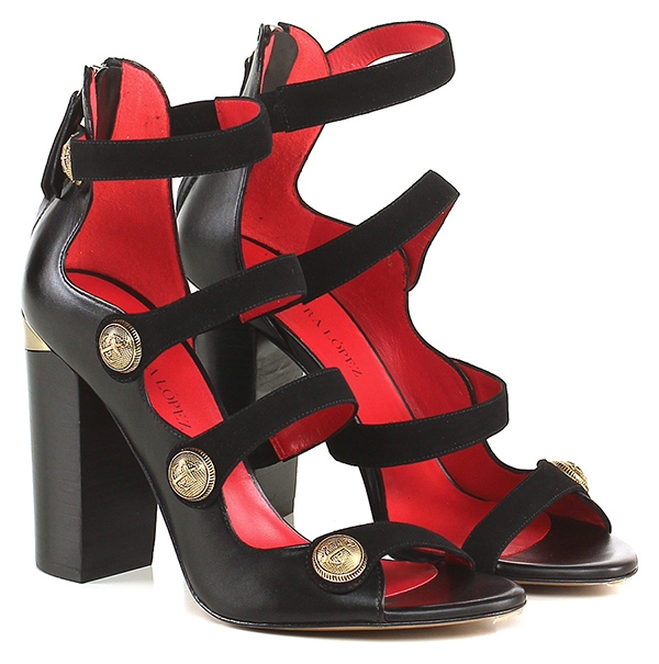 Scarpa con tacco in pelle e camoscio con zip su retro e borchie su lato esterno. Suola in cuoio, tacco 105 effetto legno.