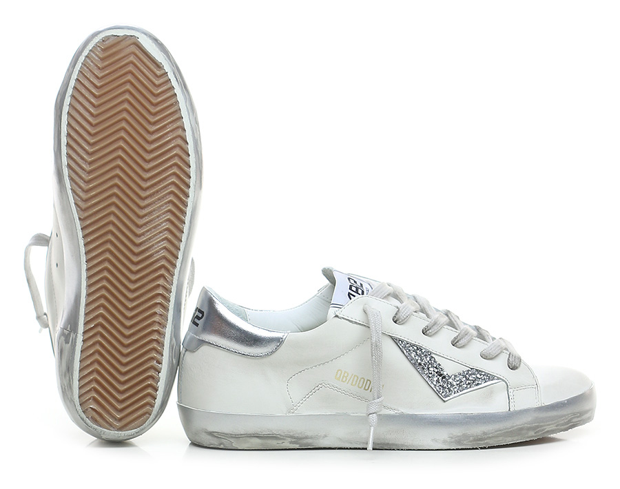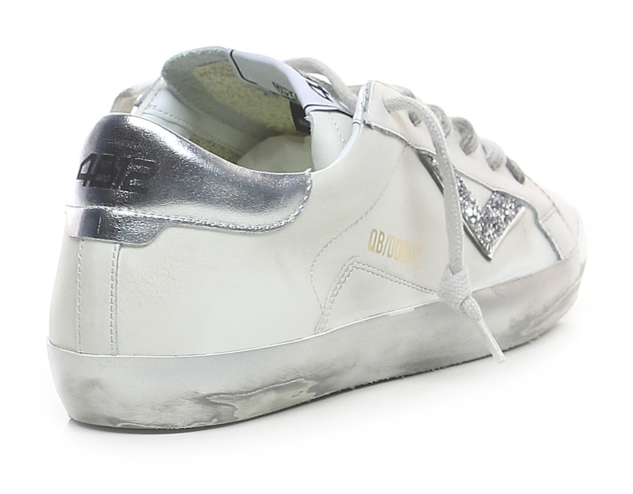 Ledersneaker in Vintage-Optik mit Fersenlasche aus laminiertem Leder und seitlichem Glitzereinsatz. Gummisohle mit Vintage-Effekt. 25 mm Absatzhöhe, 20 mm Plateau mit 5 mm Absatz.