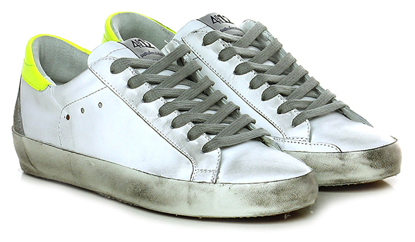 Sneaker in pelle laminata, camoscio e vernice con suola in gomma. vintage, tacco 30.