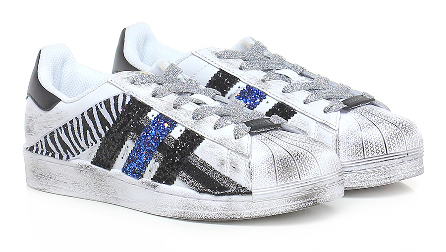 Sneaker in pelle effetto vintage con inserti in tessuto, glitter e tessuto lurex, suola in gomma. Altezza suola: 30, platform 20 con 10.