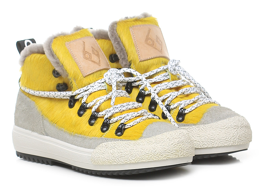 Sneaker in real fur con suola in gomma. La suola presenta il sistema antiscivolo OC SYSTEM TIPPER con staffa mobile che permette di camminare su qualsiasi superficie anche ricoperta da ghiaccio. Altezza tacco 40mm, platform 30mm con battuta 10mm.