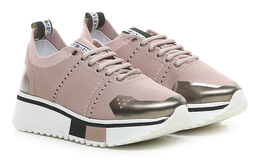 Sneaker aus Stoff mit Gummisohle. 45 mm Absatzhöhe, 25 mm Plateau mit 20 mm Absatz.