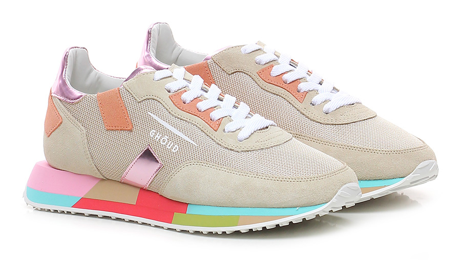 Sneaker in tessuto, camoscio e inserti in pelle specchiata, suola in gomma . Altezza suola: 30, platform 20 con battuta 10.