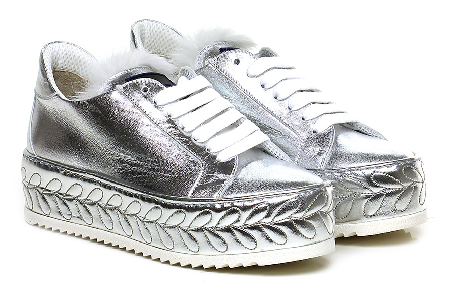 Sneaker in pelle laminata effetto vintage con inserto in lapin e suola in gomma. Tacco 45.
